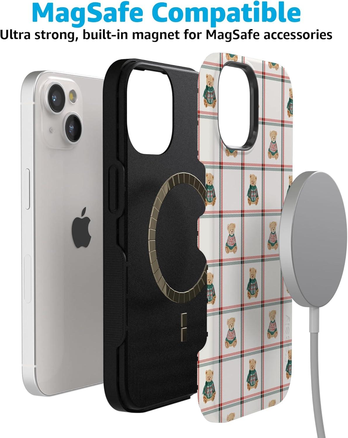 Casely iPhone 15 Plus Case | Bear Hugs | Teddy Squares | Bold Protective Design | MagSafe Compatible Design