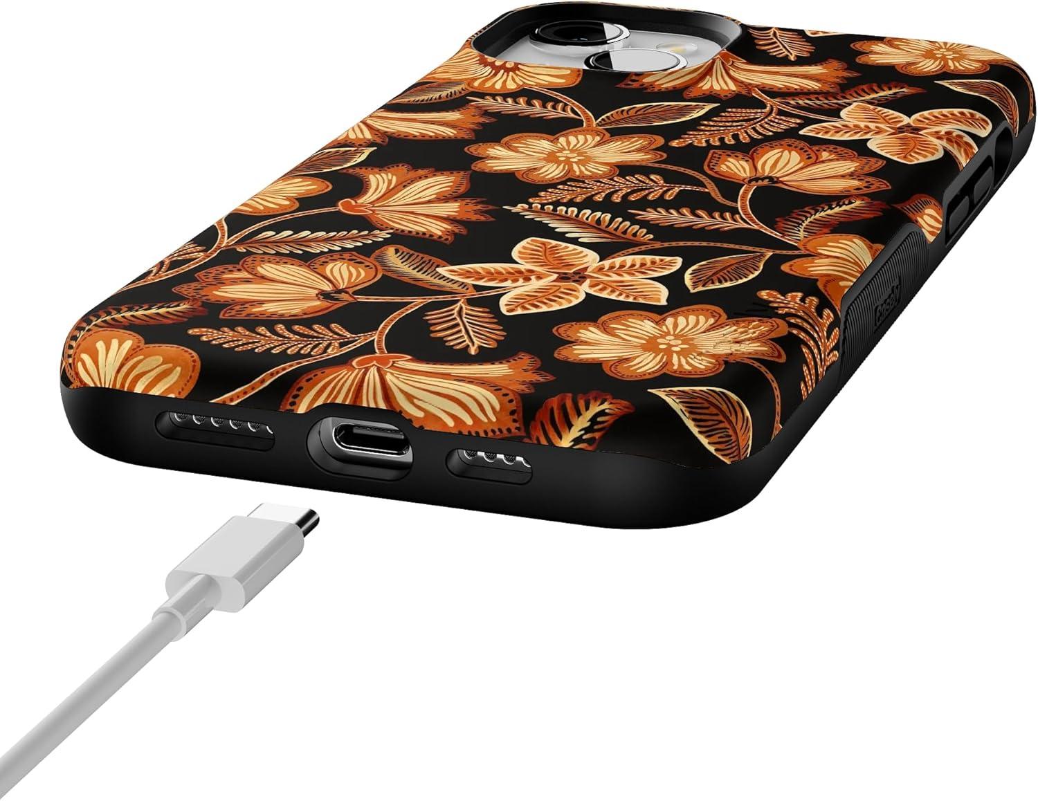 Casely iPhone 15 Plus Case | Maple Flowers | Floral Foliage | Bold Protective Design | MagSafe Compatible Design