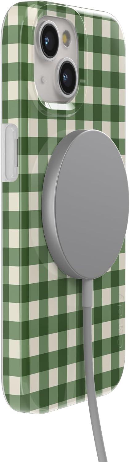 Casely iPhone 15 Plus Case | Monet’s Morning | The Met Museum | Compatible with MagSafe | Classic Ultra Slim Design(Checked Twice | Green Plaid)