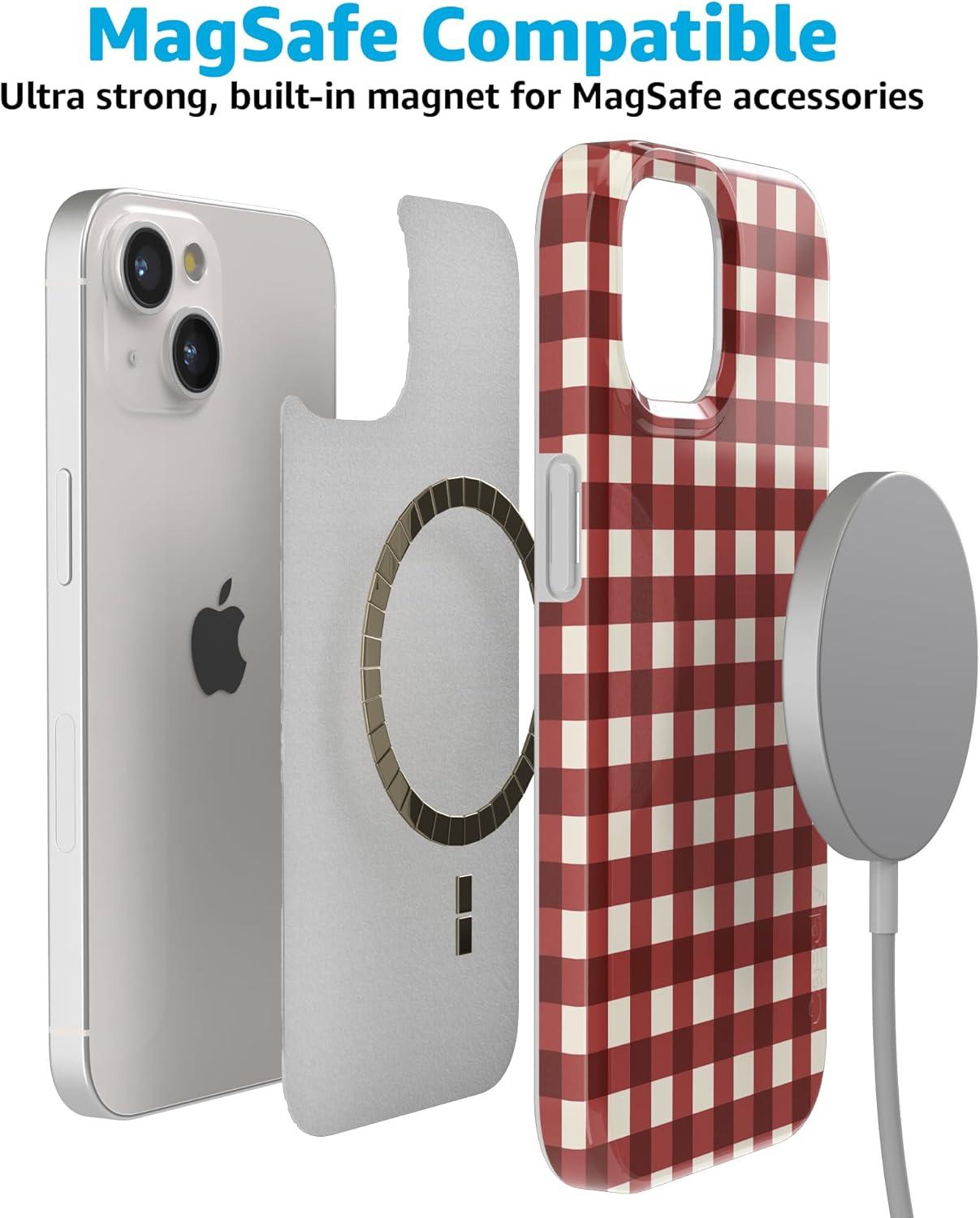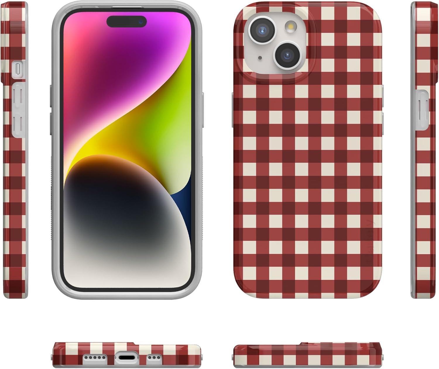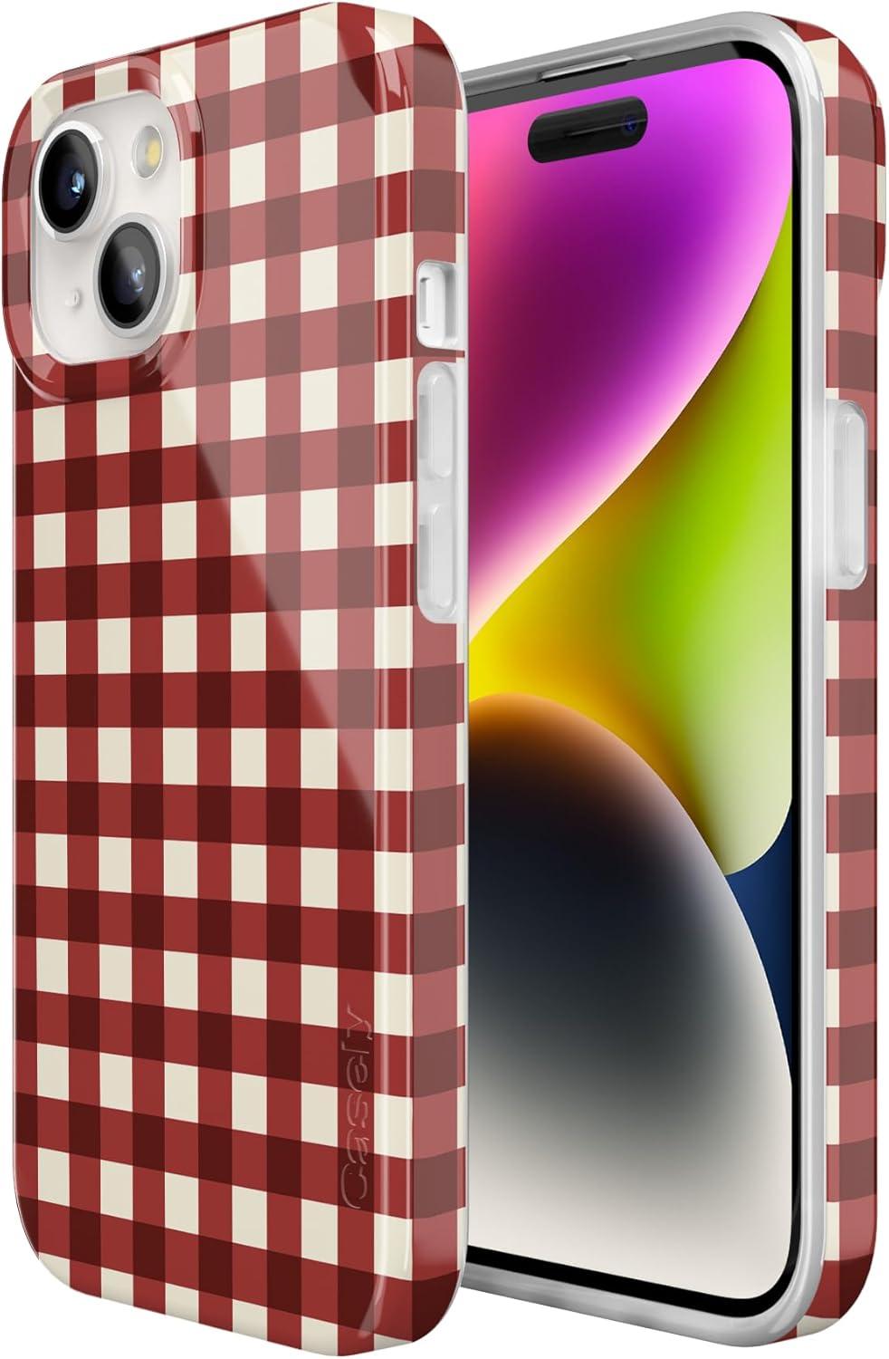 Casely iPhone 15 Plus Case | Monet’s Morning | The Met Museum | Compatible with MagSafe | Classic Ultra Slim Design(Checked Twice | Red Plaid)
