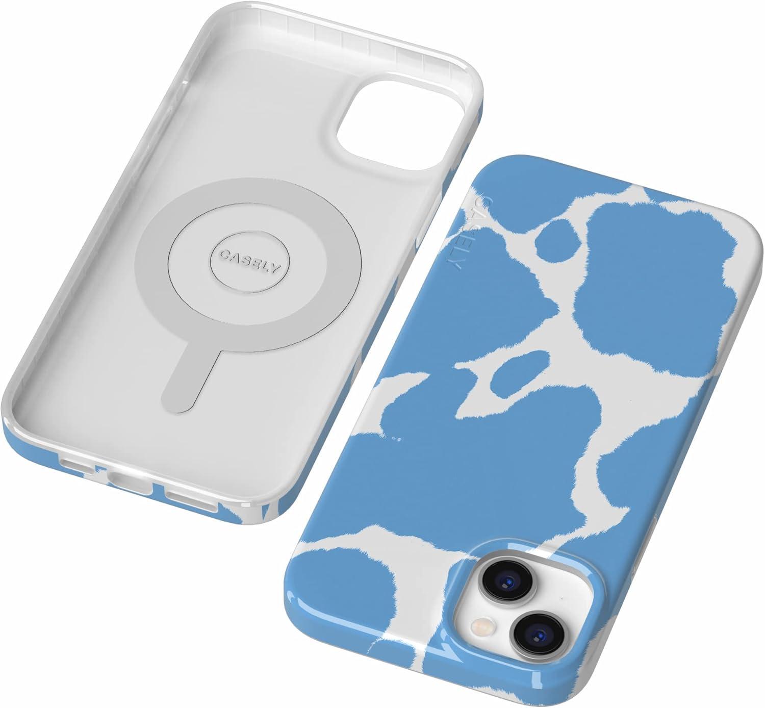 Casely iPhone 15 Plus Case | Monet’s Morning | The Met Museum | Compatible with MagSafe | Classic Ultra Slim Design(Current MOOd | Light Blue Cow Print)