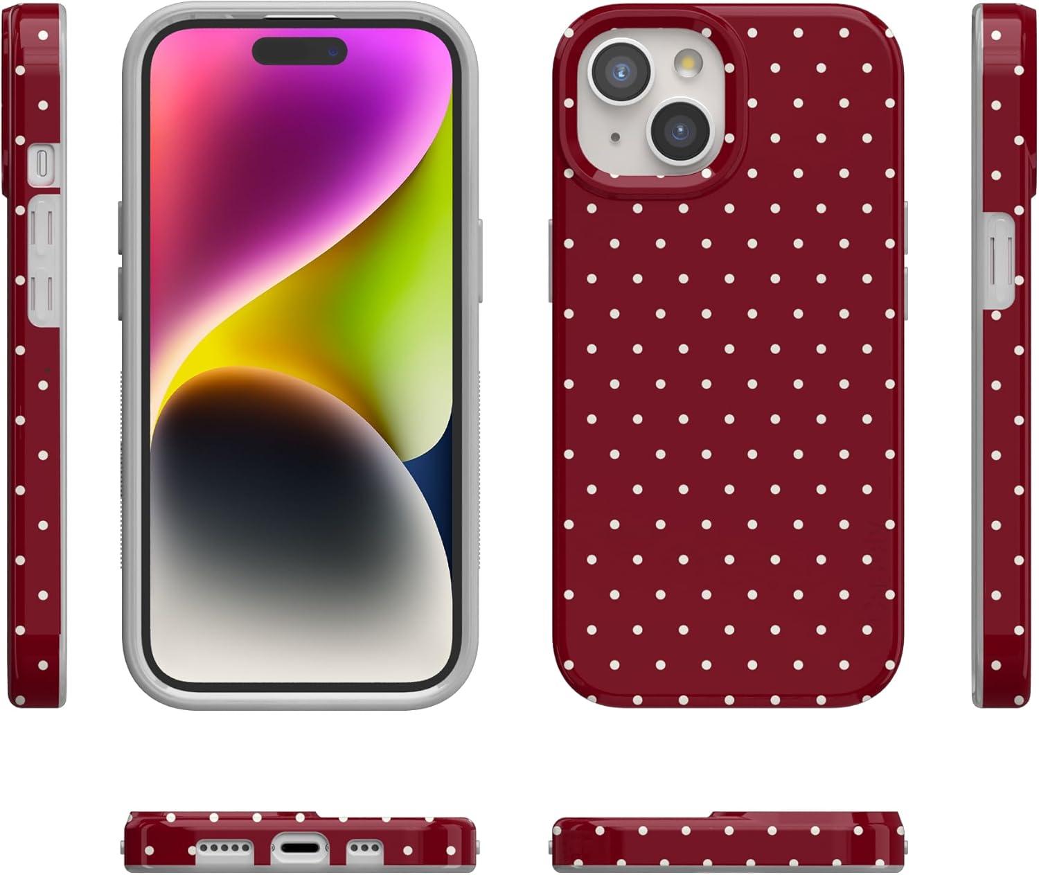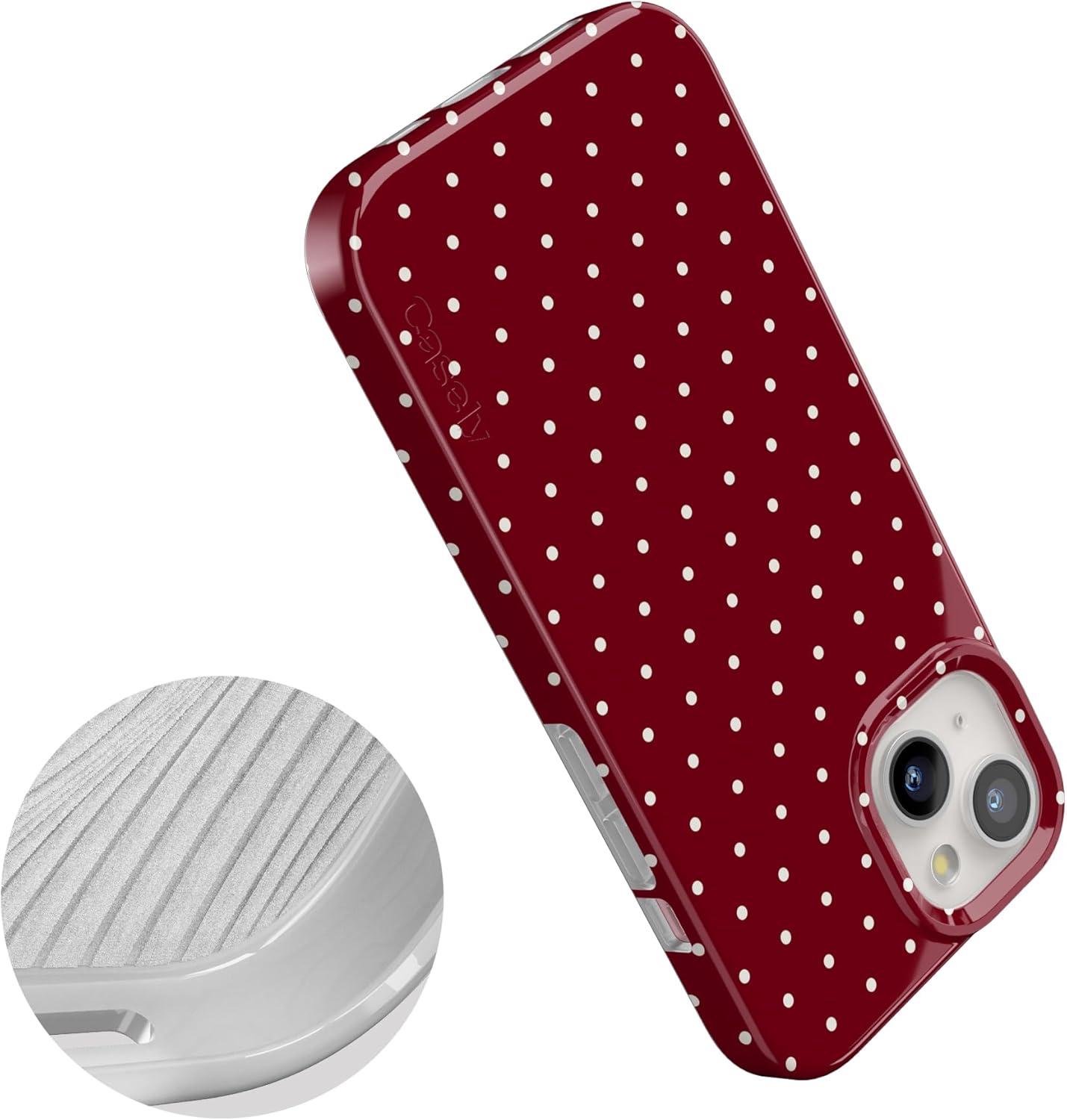 Casely iPhone 15 Plus Case | Monet’s Morning | The Met Museum | Compatible with MagSafe | Classic Ultra Slim Design(On the Dot | Maroon Polka Dot)