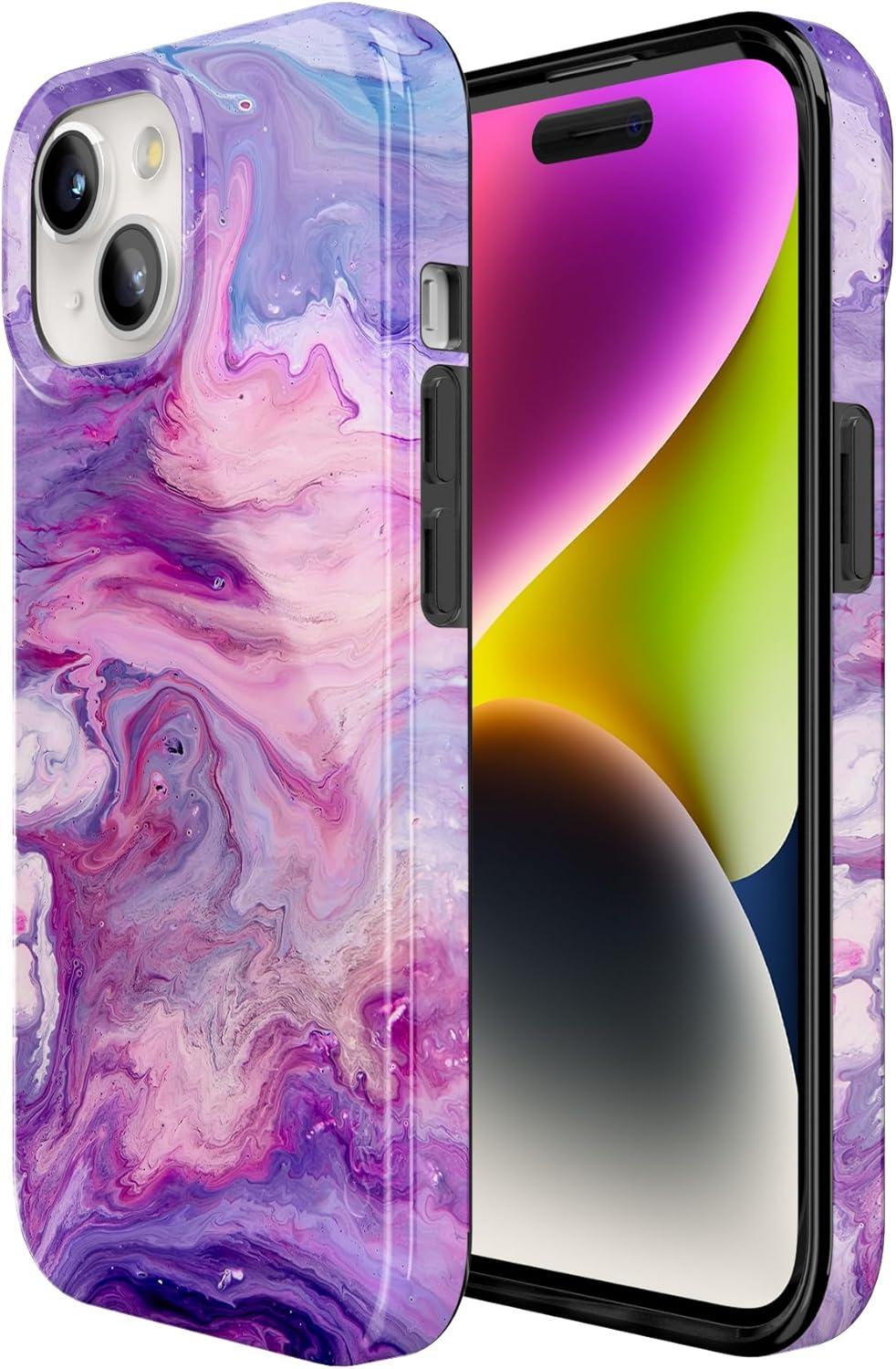 Casely iPhone 15 Plus Case | Monet’s Morning | The Met Museum | Compatible with MagSafe | Classic Ultra Slim Design(Tie Dying Over You | Purple Marble)