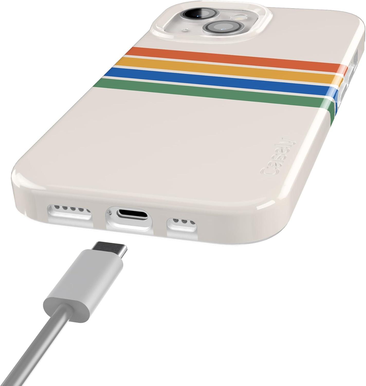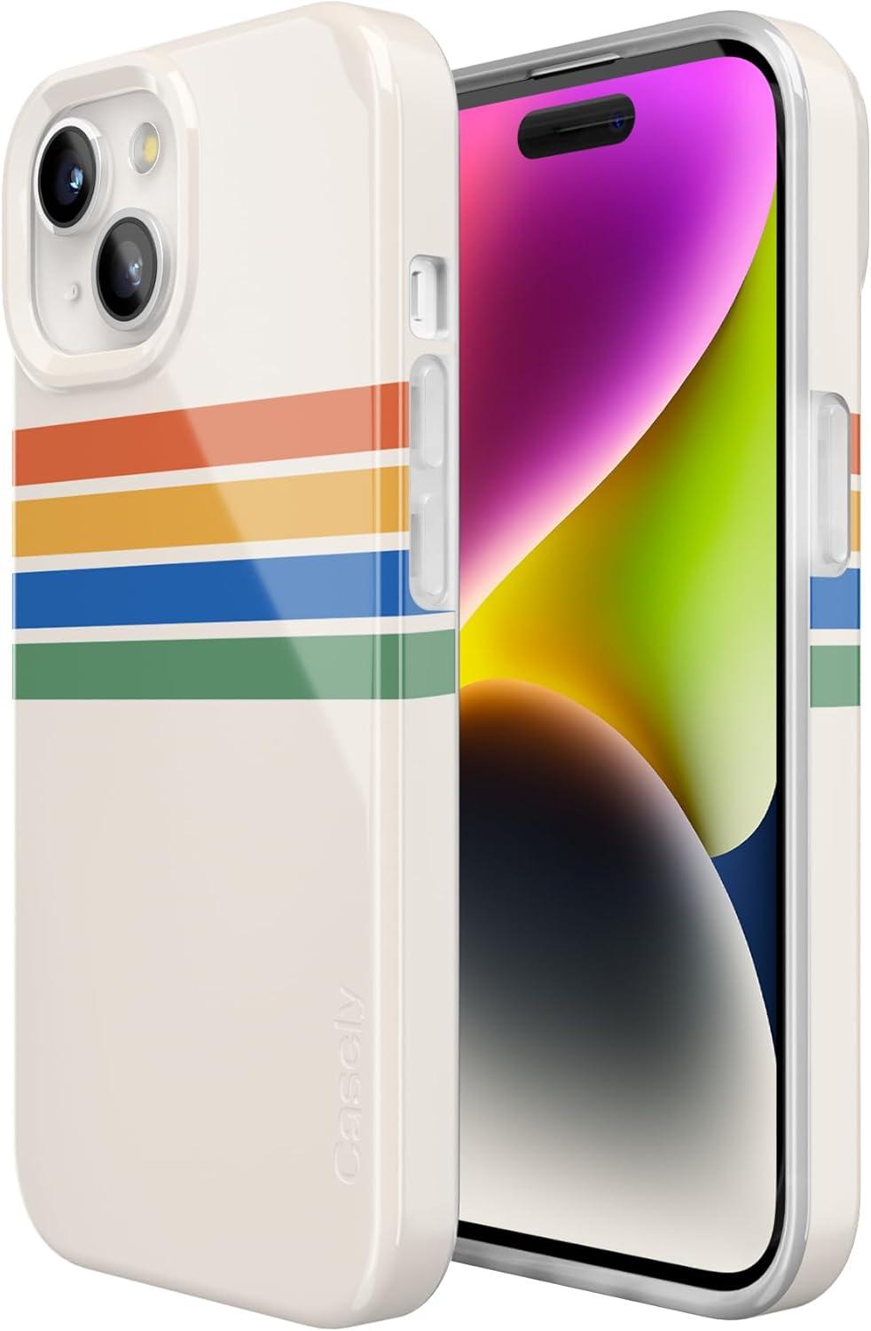 Casely iPhone 15 Plus Case | Monet’s Morning | The Met Museum | Compatible with MagSafe | Classic Ultra Slim Design(Totally Groovy | Rainbow Stripes Color Block)