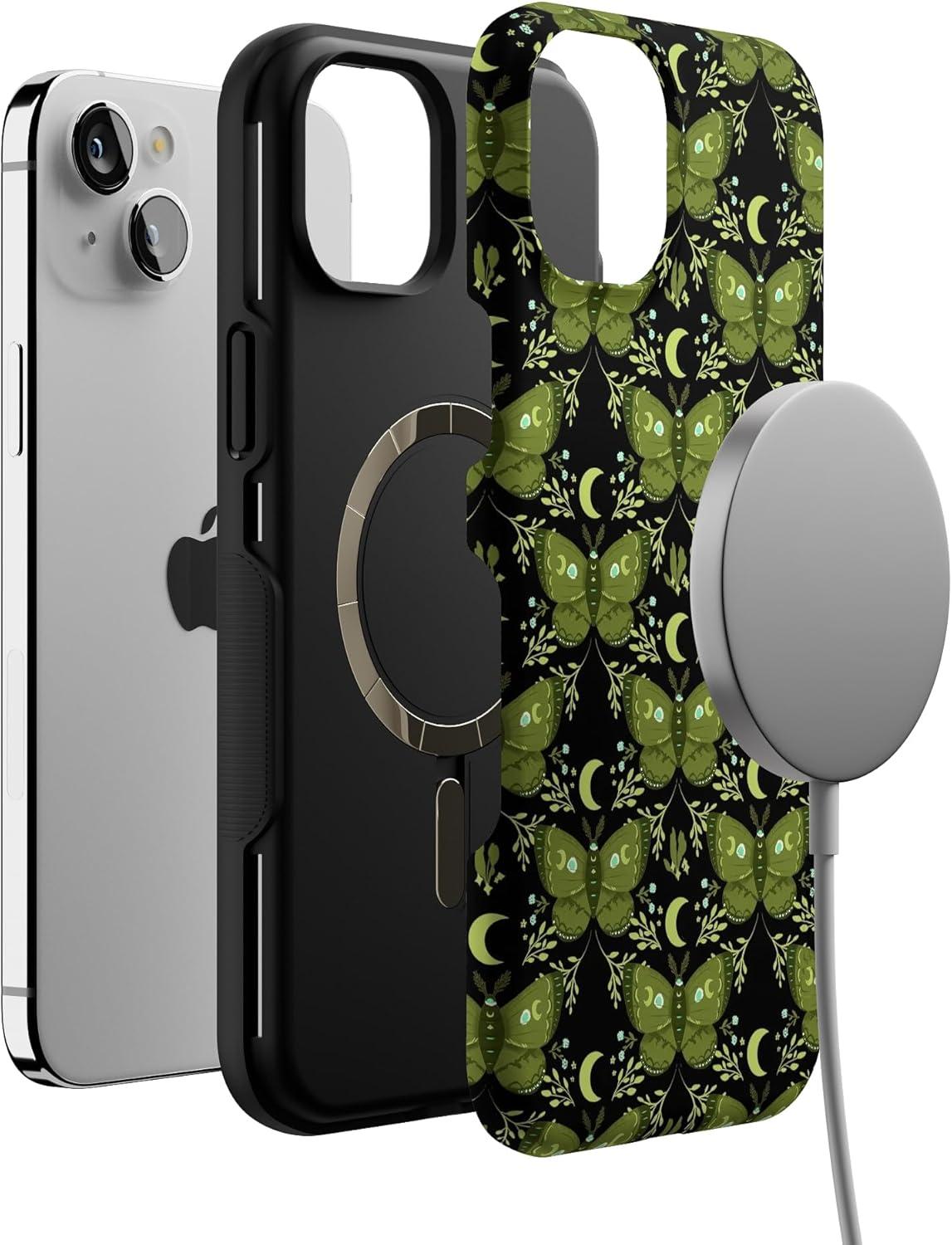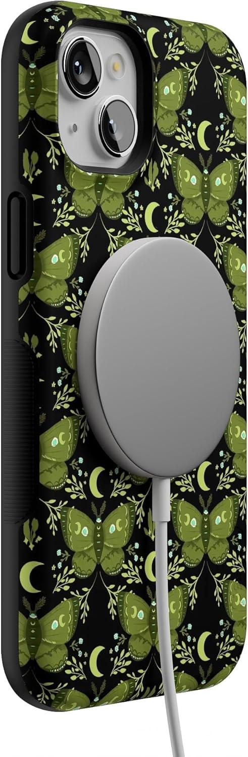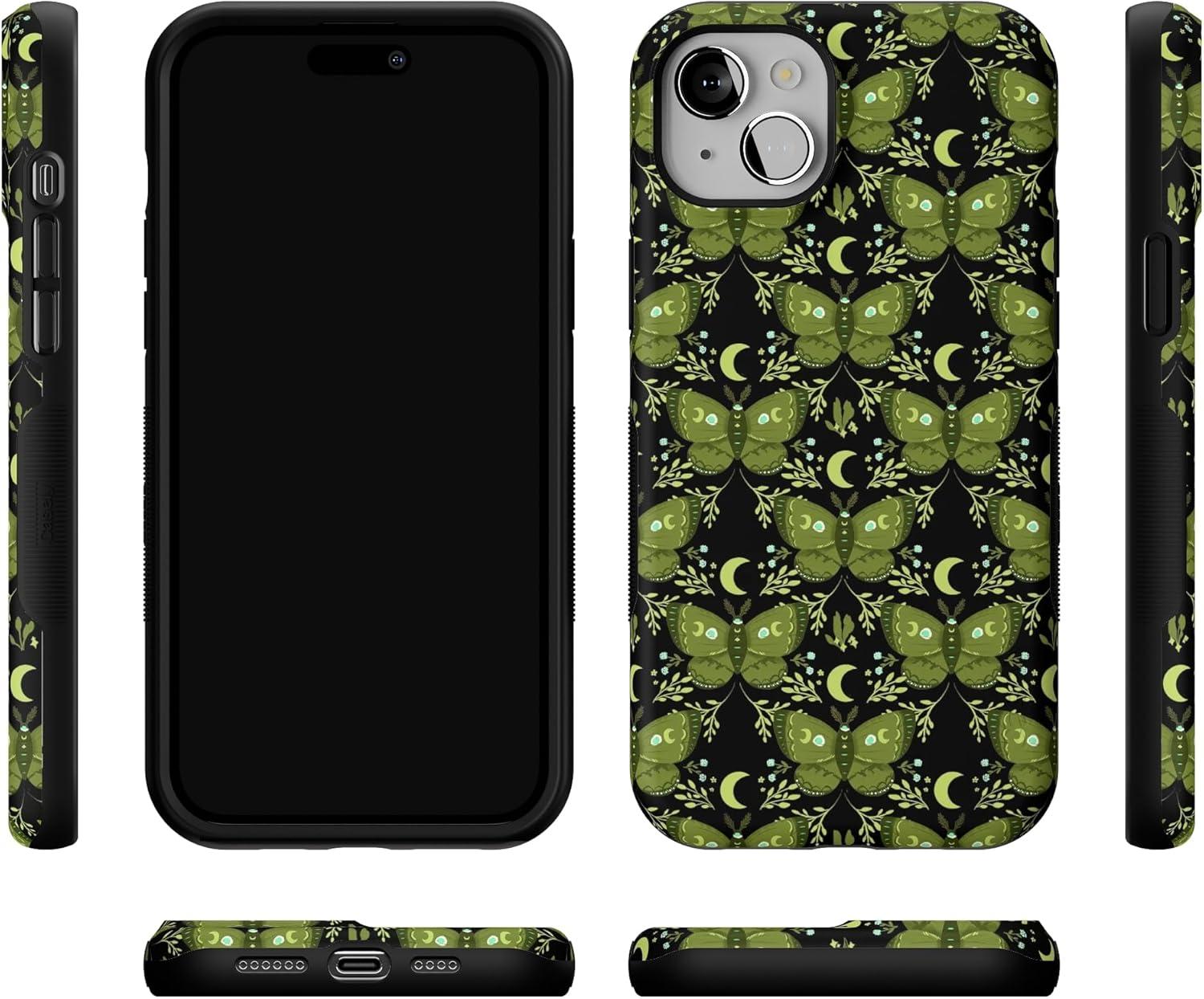 Casely iPhone 15 Plus Case | Mystic Moths | Green Twilight | Bold Protective Design | MagSafe Compatible Design