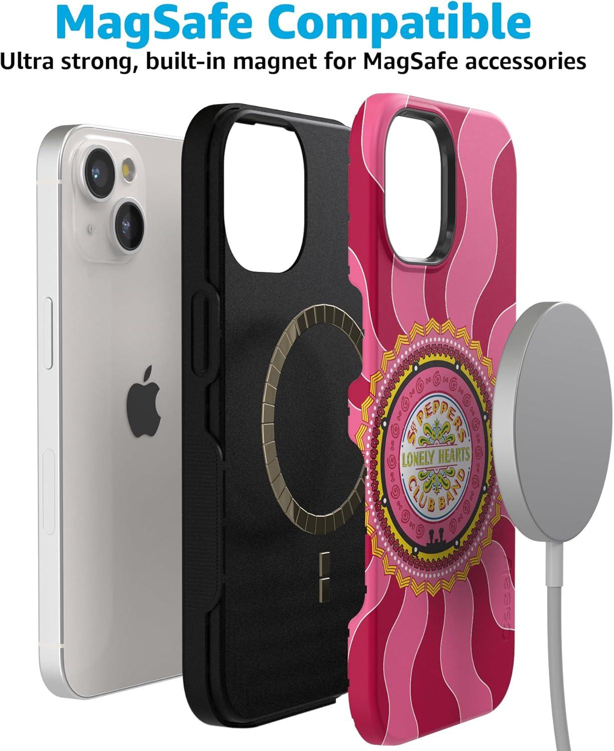 Casely iPhone 15 Plus Case | Navy Floral | Full Bloom | Bold Protective Design | Compatible with MagSafe(Beatles | Lonely Hearts Club | Sgt. Pepper’s)