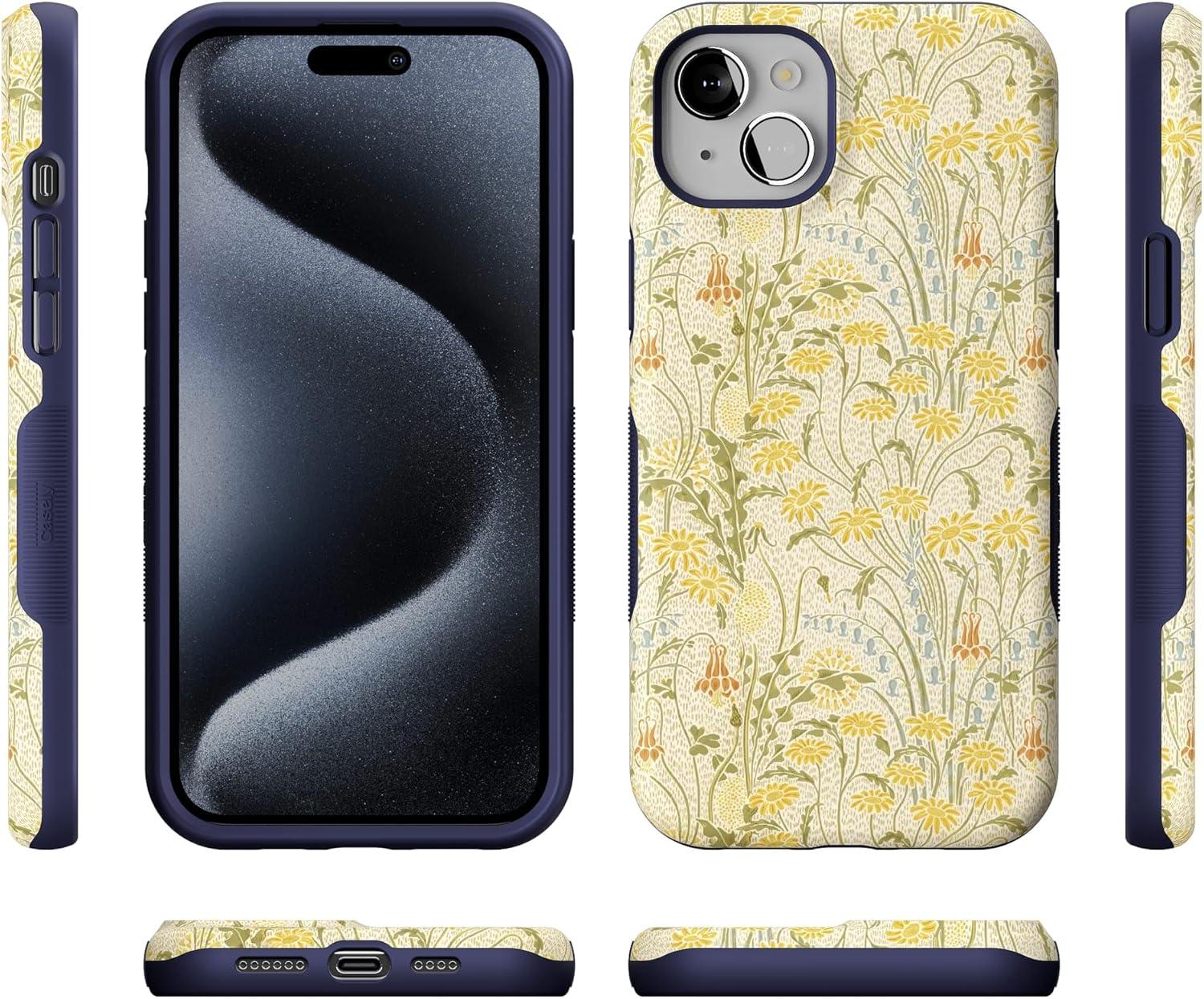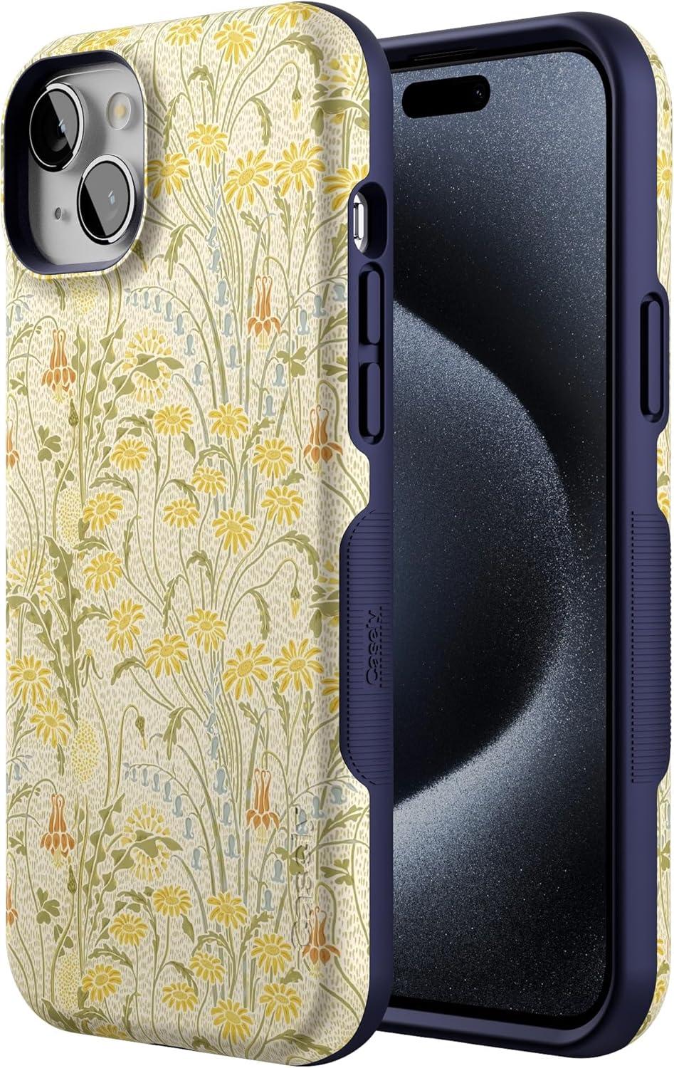 Casely iPhone 15 Plus Case | Navy Floral | Full Bloom | Bold Protective Design | Compatible with MagSafe(Boho Blooms | Golden Floral)