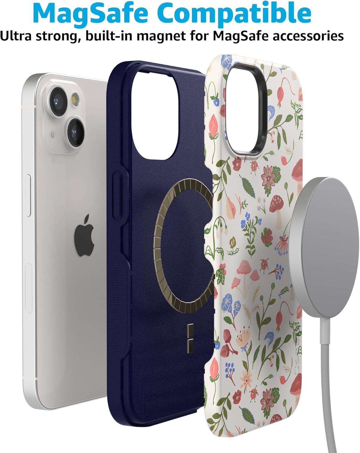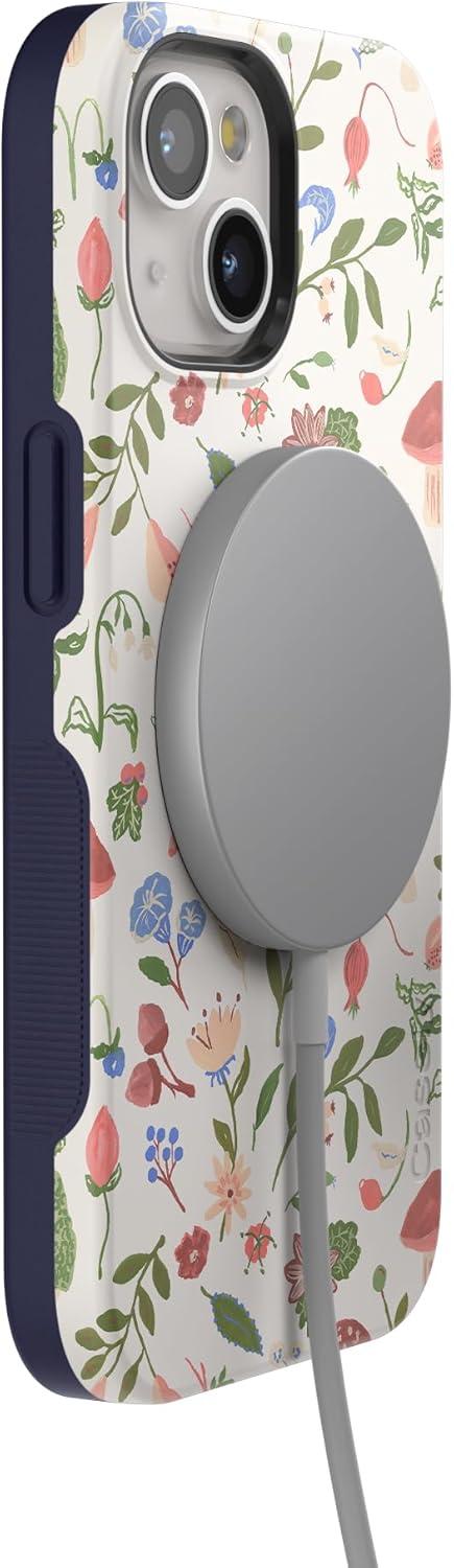 Casely iPhone 15 Plus Case | Navy Floral | Full Bloom | Bold Protective Design | Compatible with MagSafe(Garden Party | Mushroom Floral)