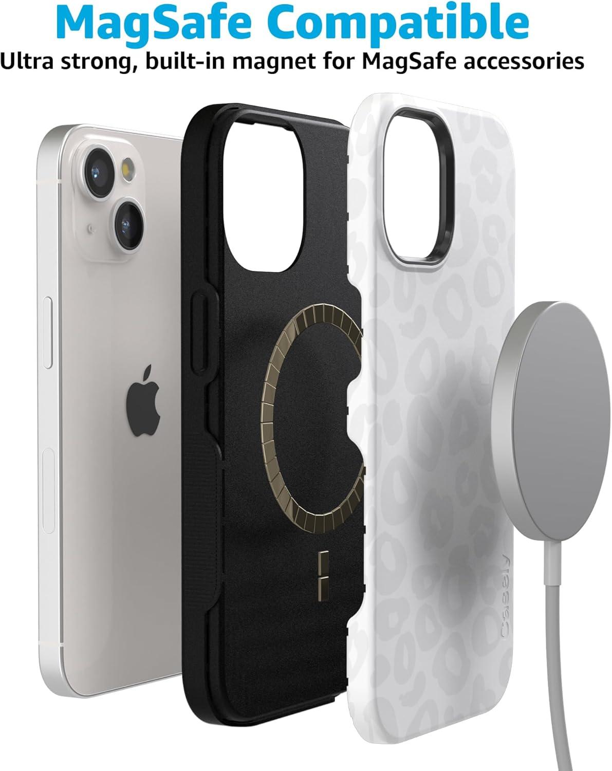 Casely iPhone 15 Plus Case | Navy Floral | Full Bloom | Bold Protective Design | Compatible with MagSafe(Into the Wild | White Snow Leopard)
