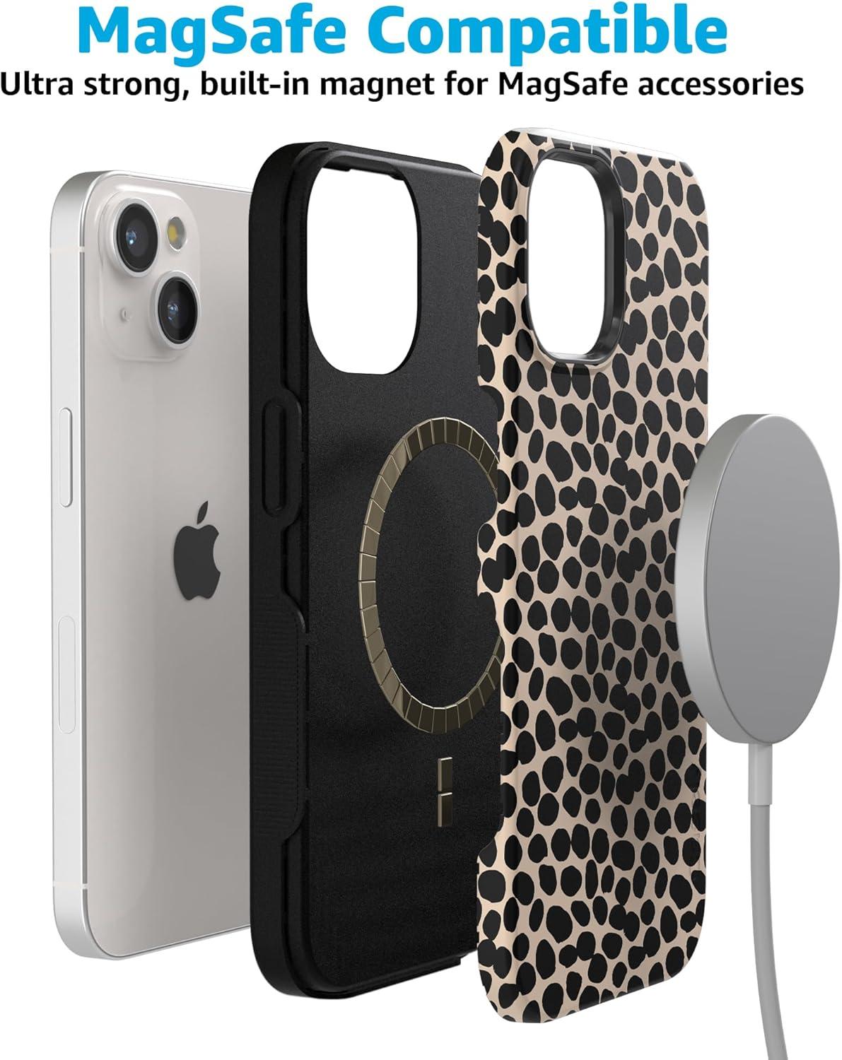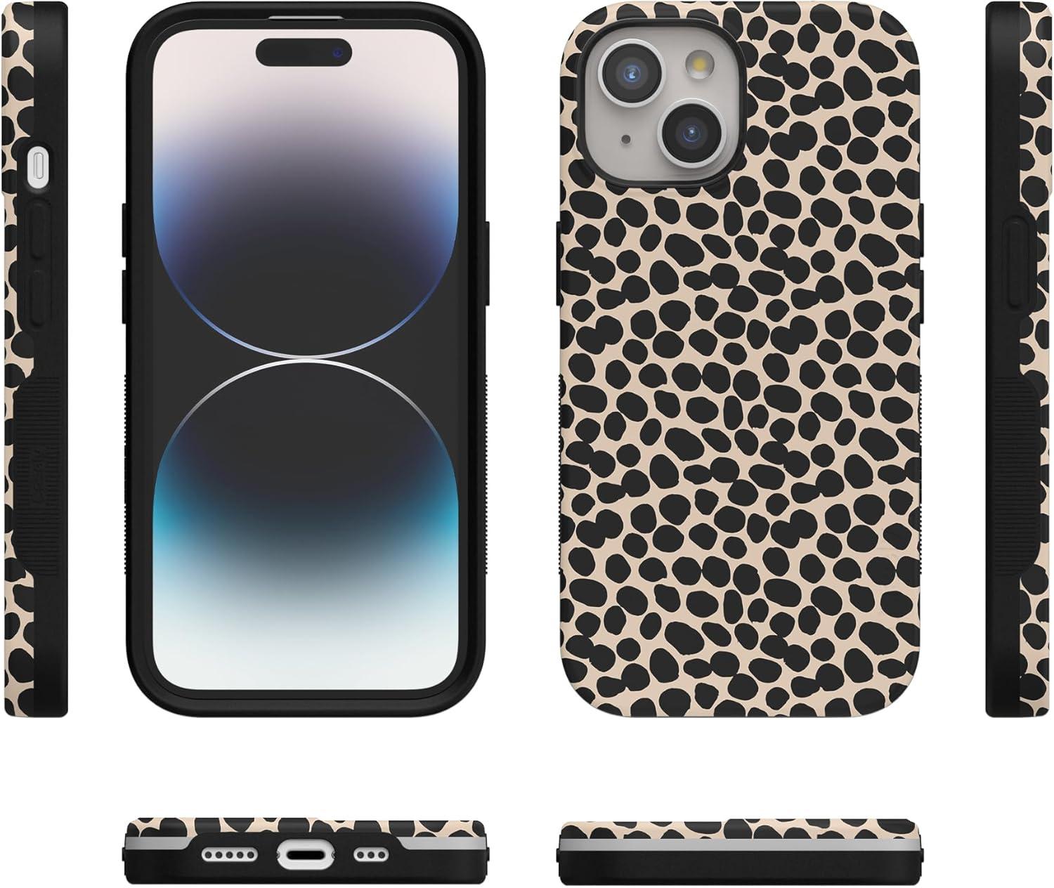 Casely iPhone 15 Plus Case | Navy Floral | Full Bloom | Bold Protective Design | Compatible with MagSafe(Lost in Spots | Cheetah Print)
