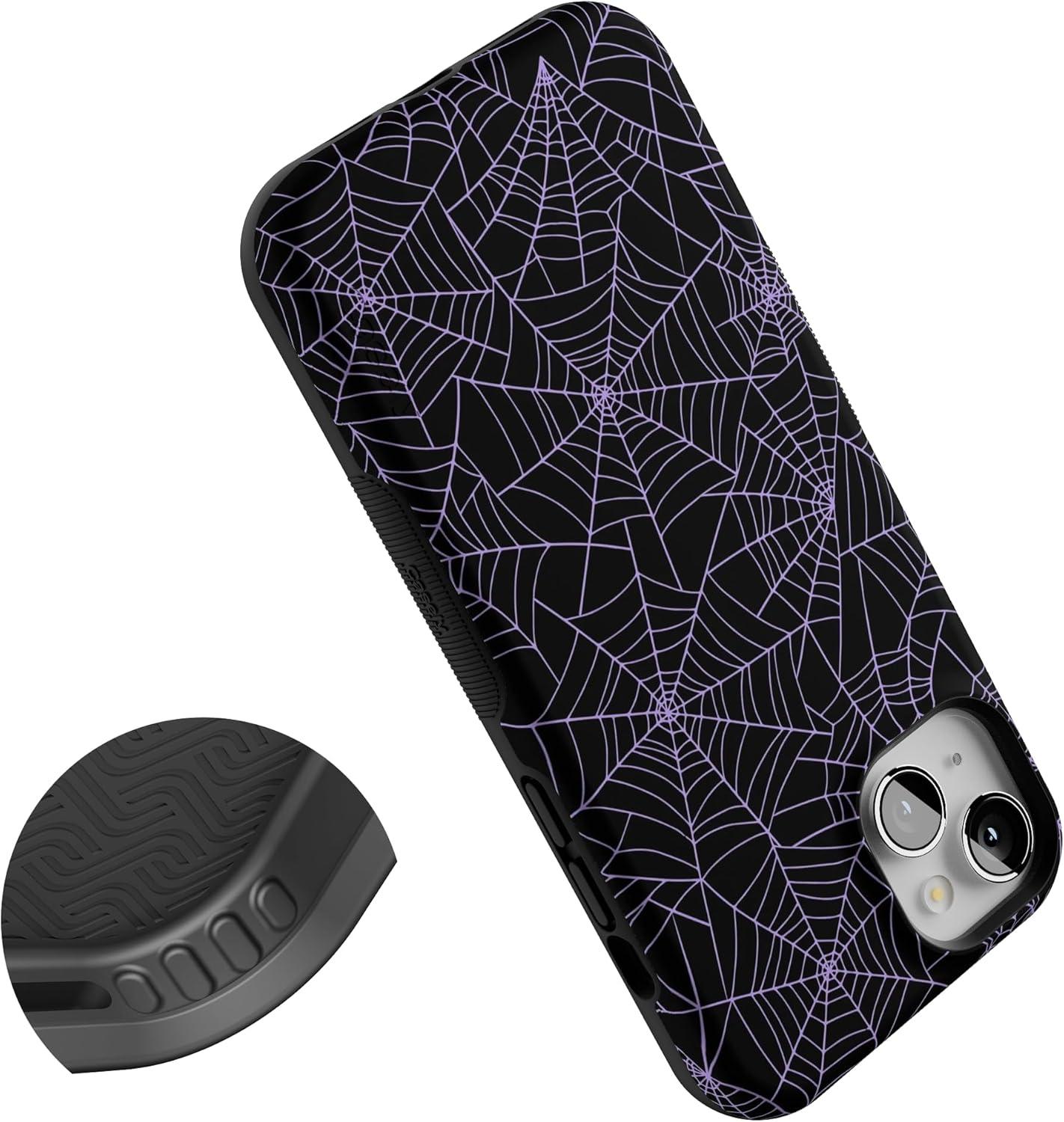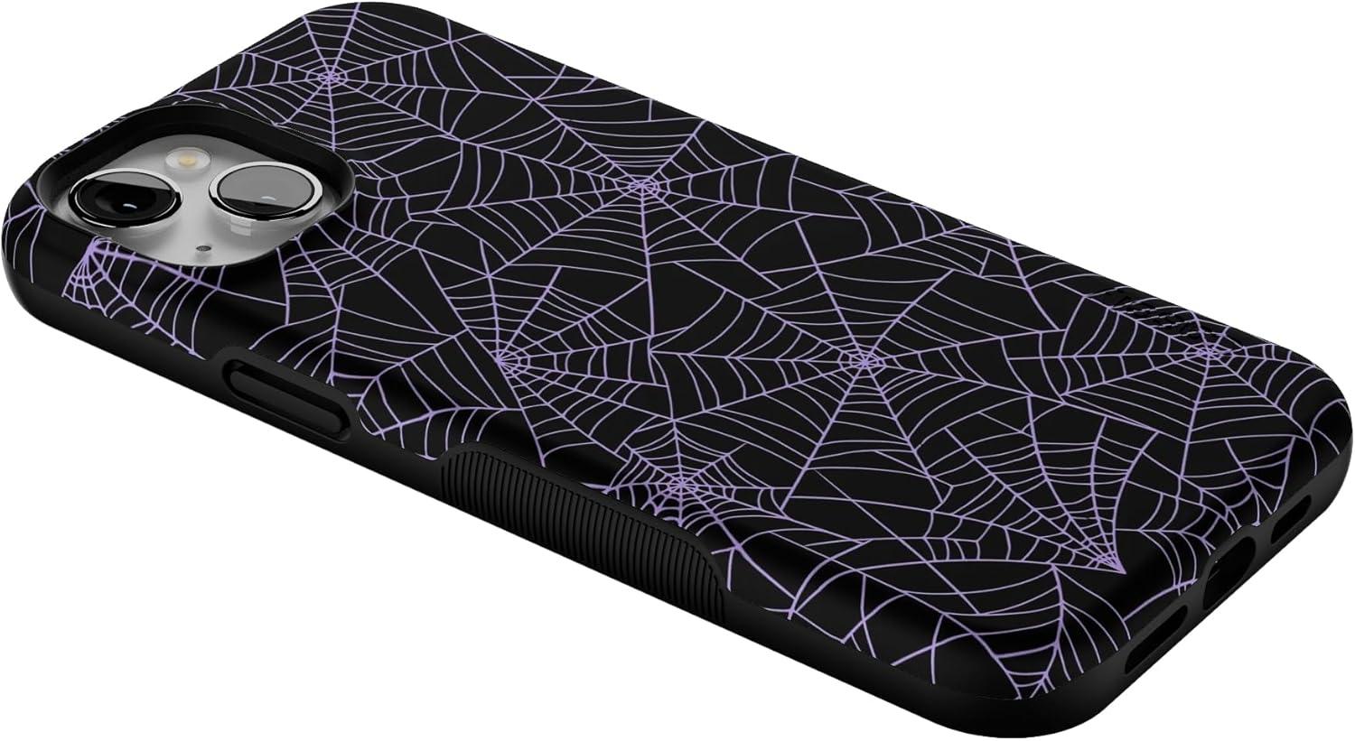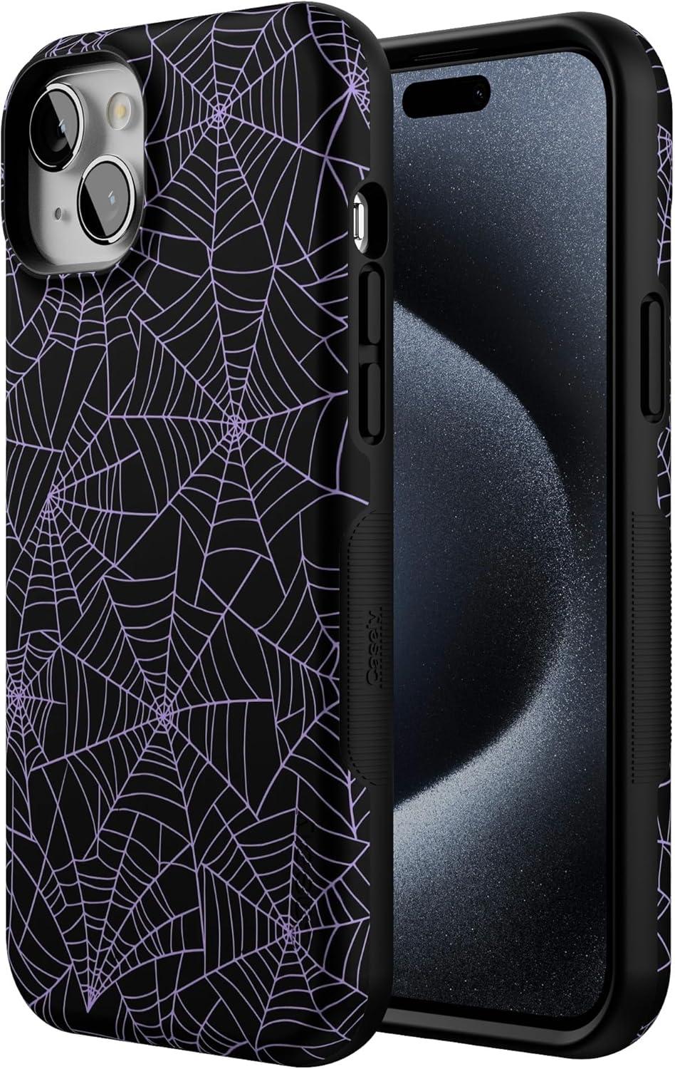 Casely iPhone 15 Plus Case | Navy Floral | Full Bloom | Bold Protective Design | Compatible with MagSafe(Midnight Web | Spider Web)