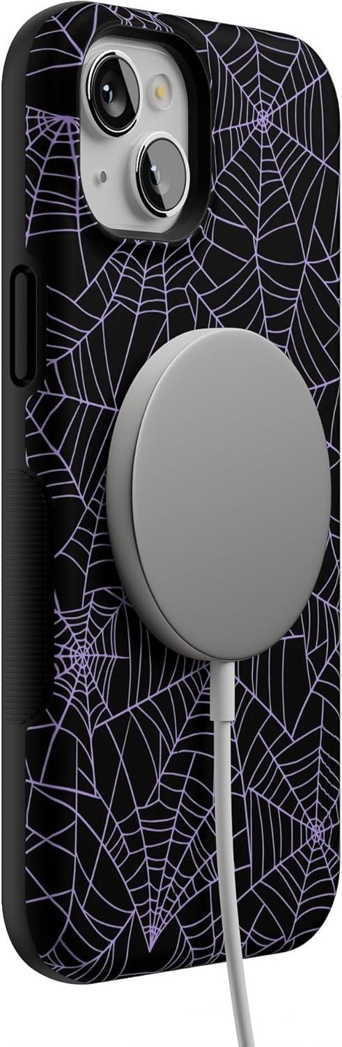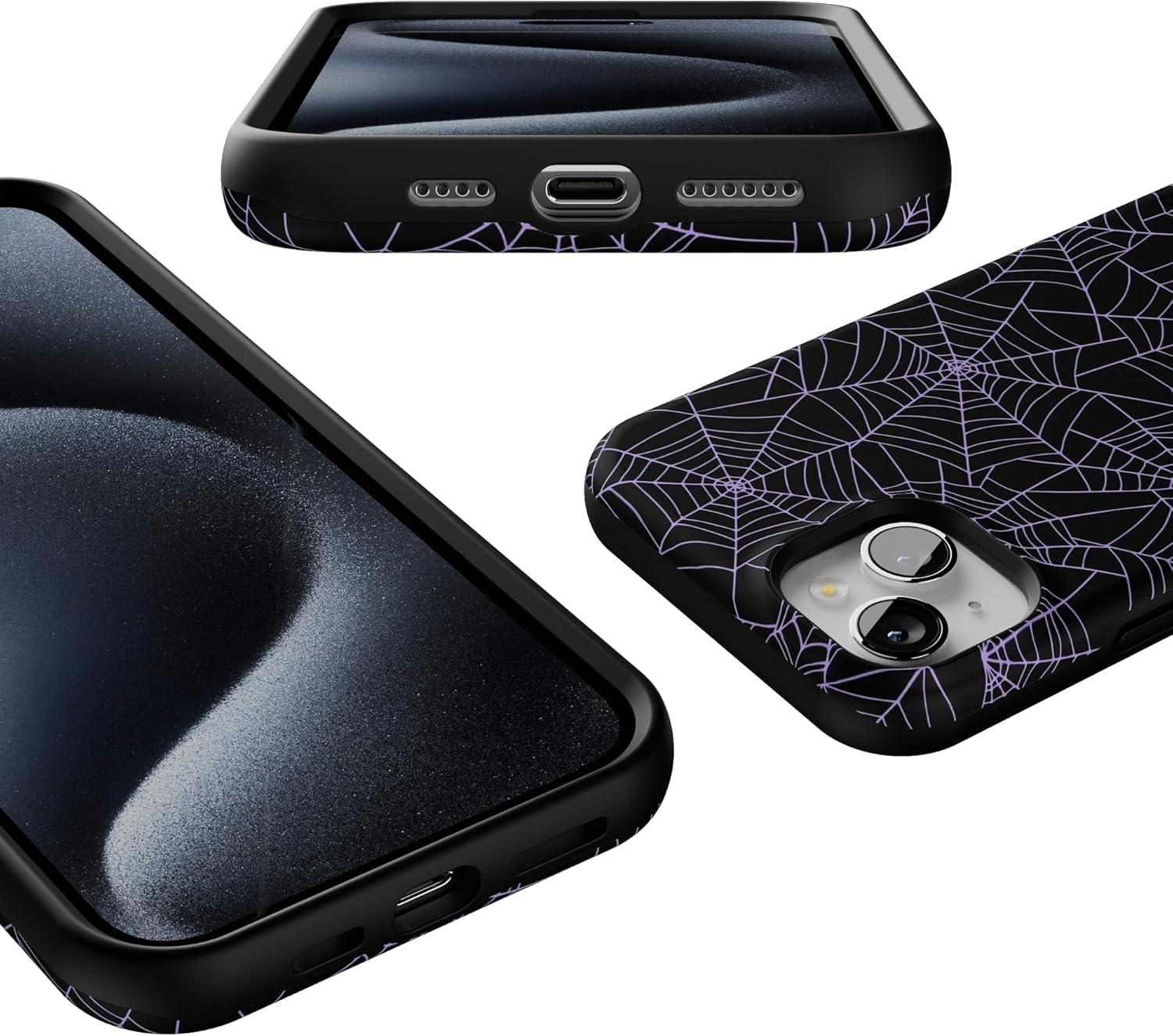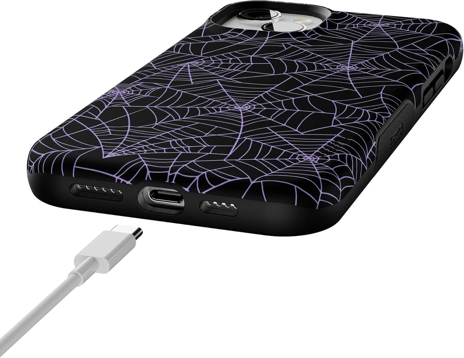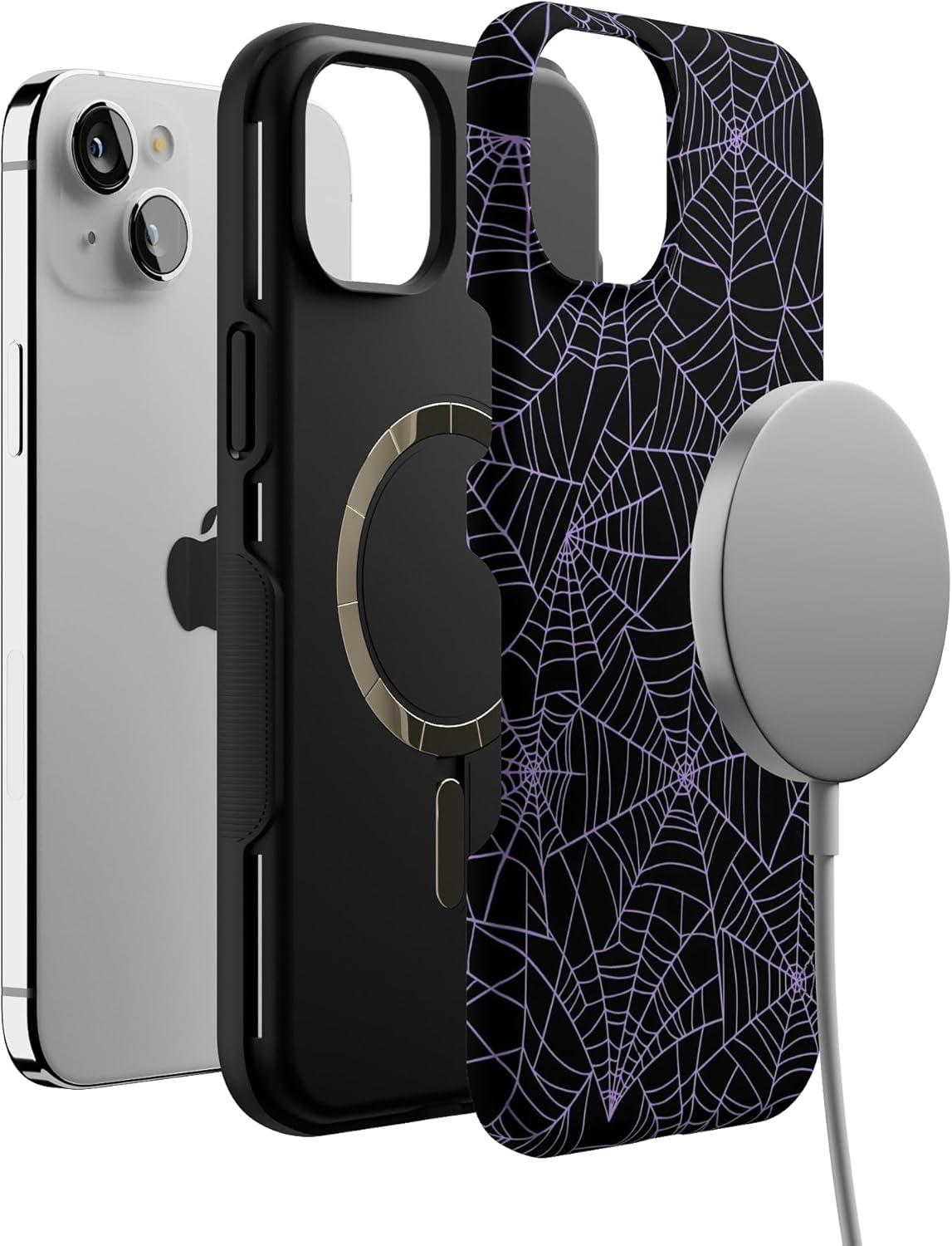 Casely iPhone 15 Plus Case | Navy Floral | Full Bloom | Bold Protective Design | Compatible with MagSafe(Midnight Web | Spider Web)