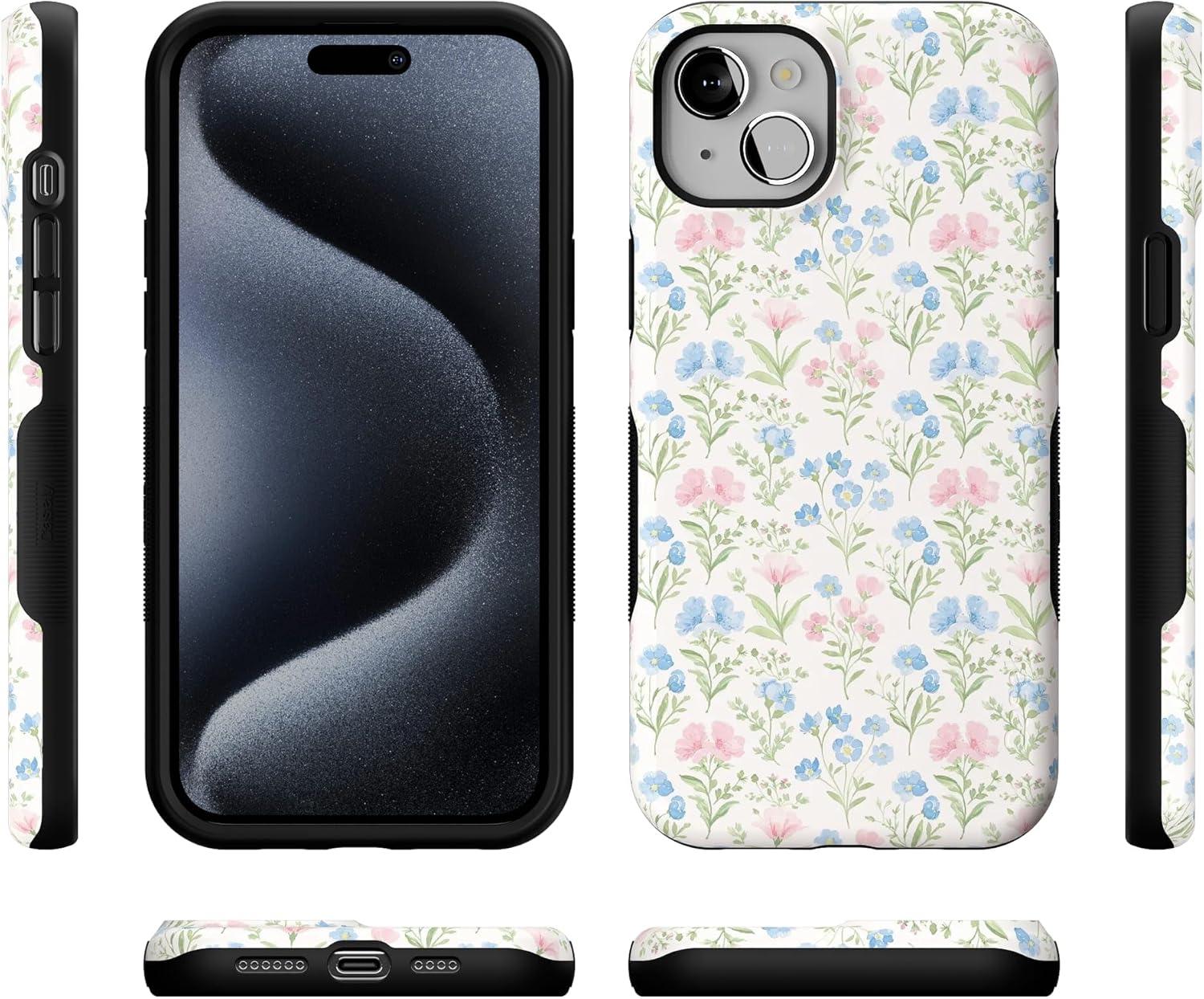 Casely iPhone 15 Plus Case | Navy Floral | Full Bloom | Bold Protective Design | Compatible with MagSafe(Pastel Garden | Sunday Best)