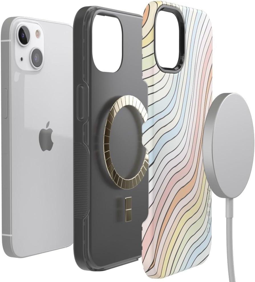 Casely iPhone 15 Plus Case | Navy Floral | Full Bloom | Bold Protective Design | Compatible with MagSafe(Ride The Wave | Pastel Rainbow Lined)