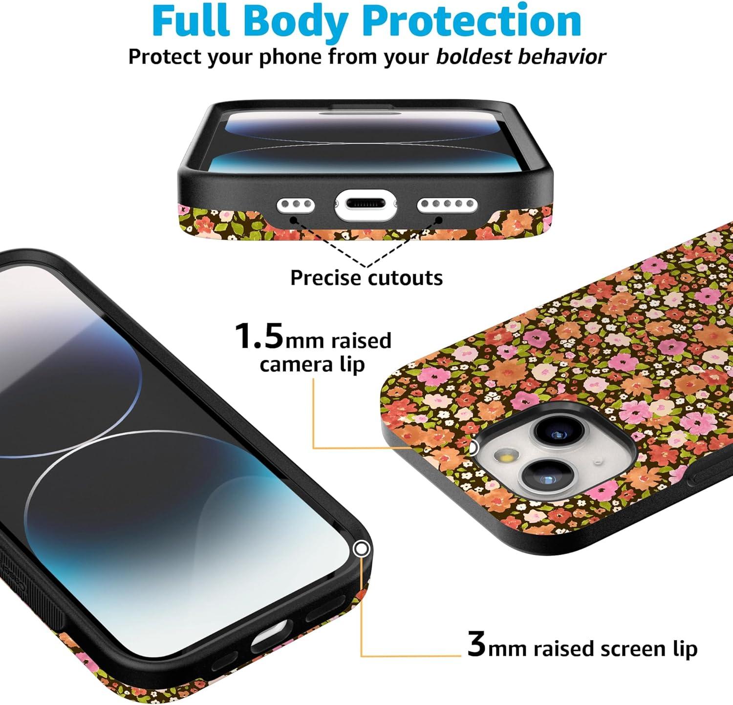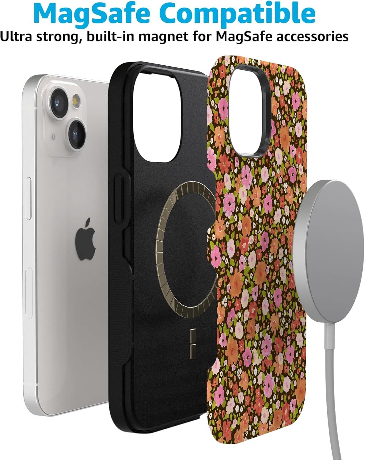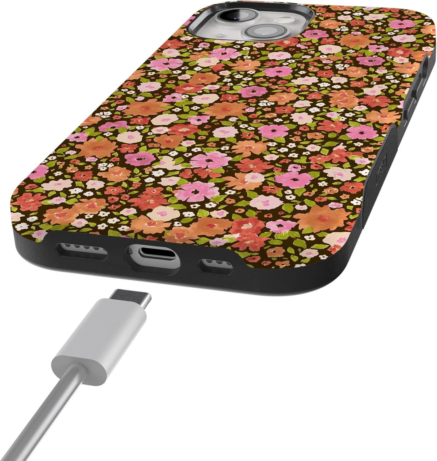 Casely iPhone 15 Plus Case | Navy Floral | Full Bloom | Bold Protective Design | Compatible with MagSafe(Rustic Roses | Boho Bouquet)