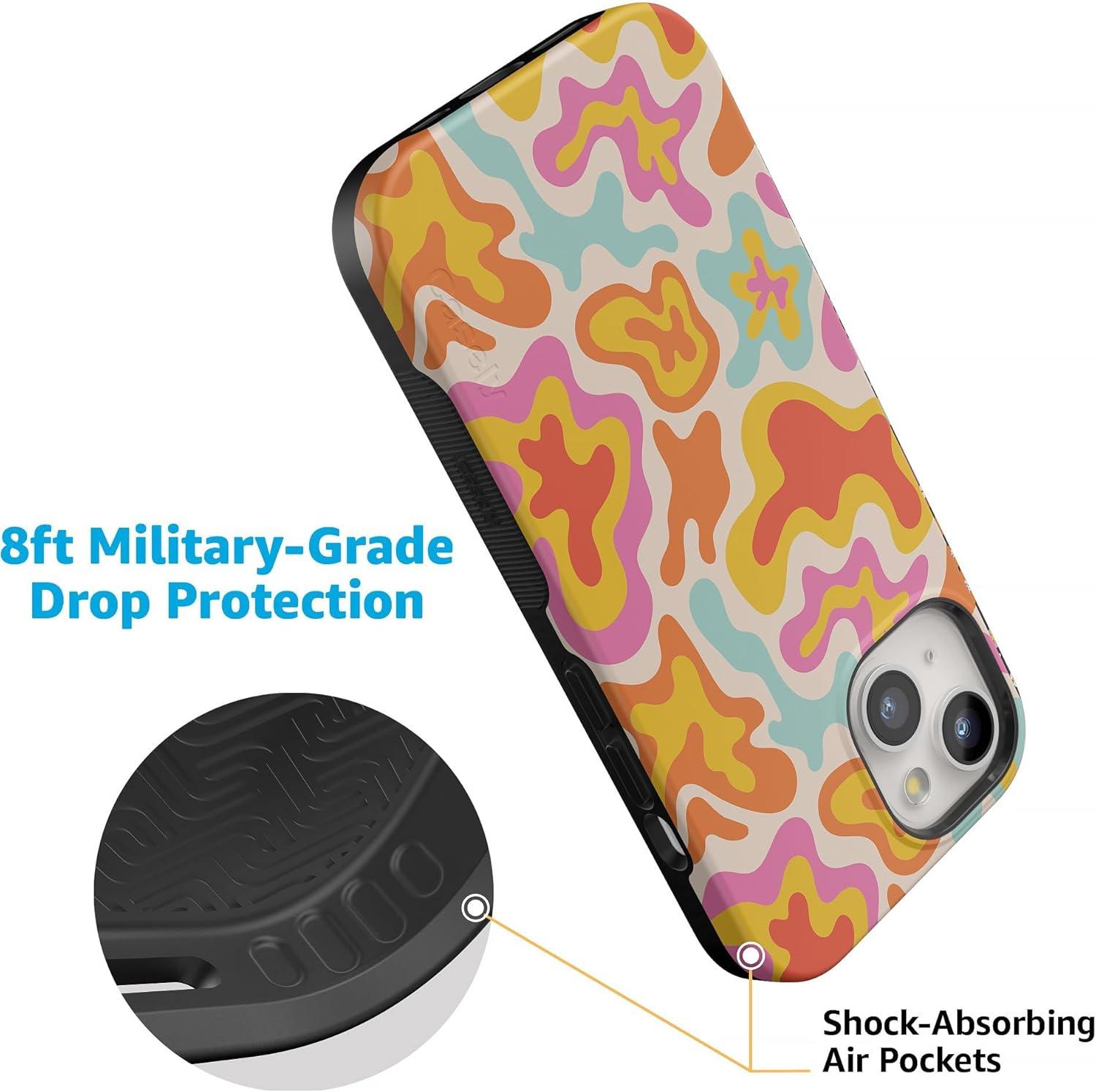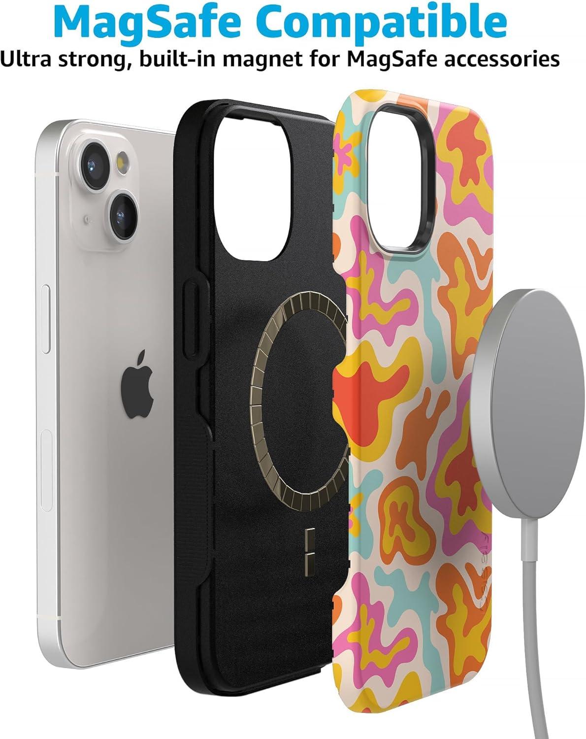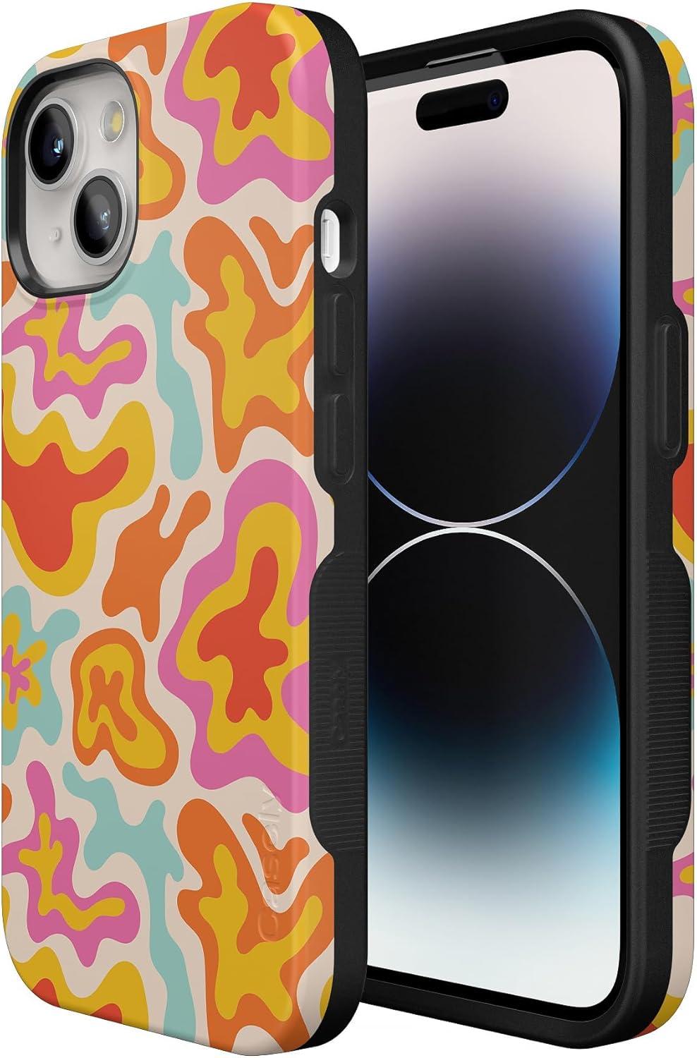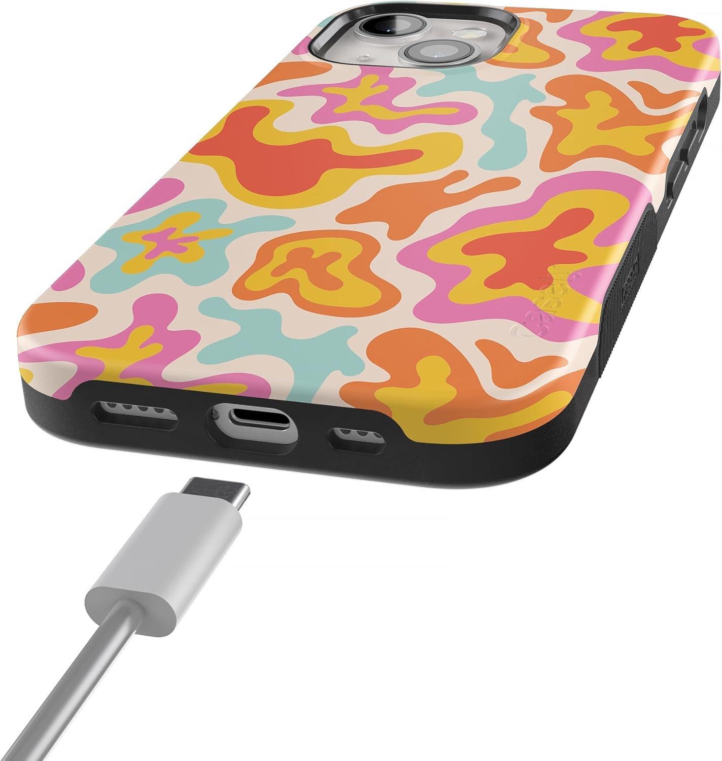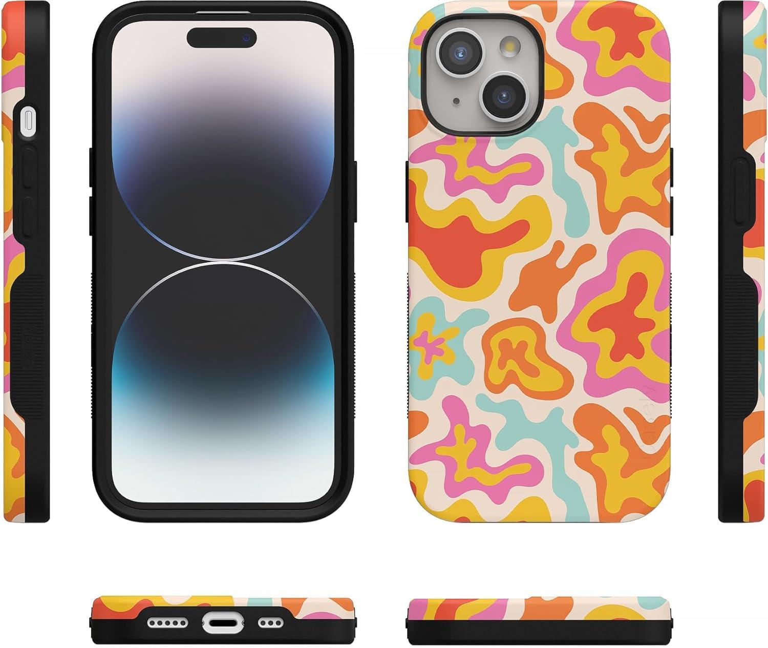 Casely iPhone 15 Plus Case | Navy Floral | Full Bloom | Bold Protective Design | Compatible with MagSafe(Tropical Color Splash | Abstract Retro)