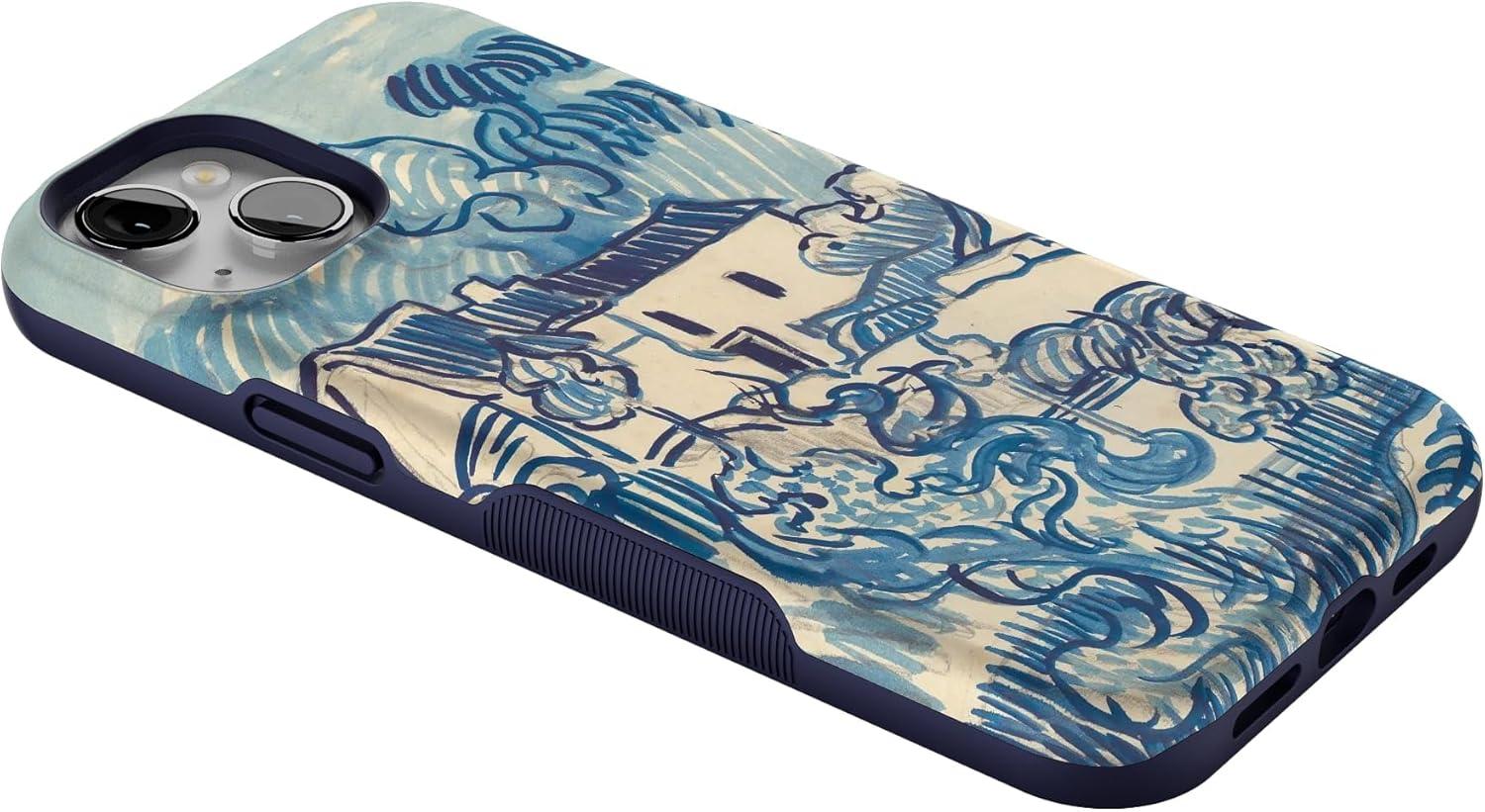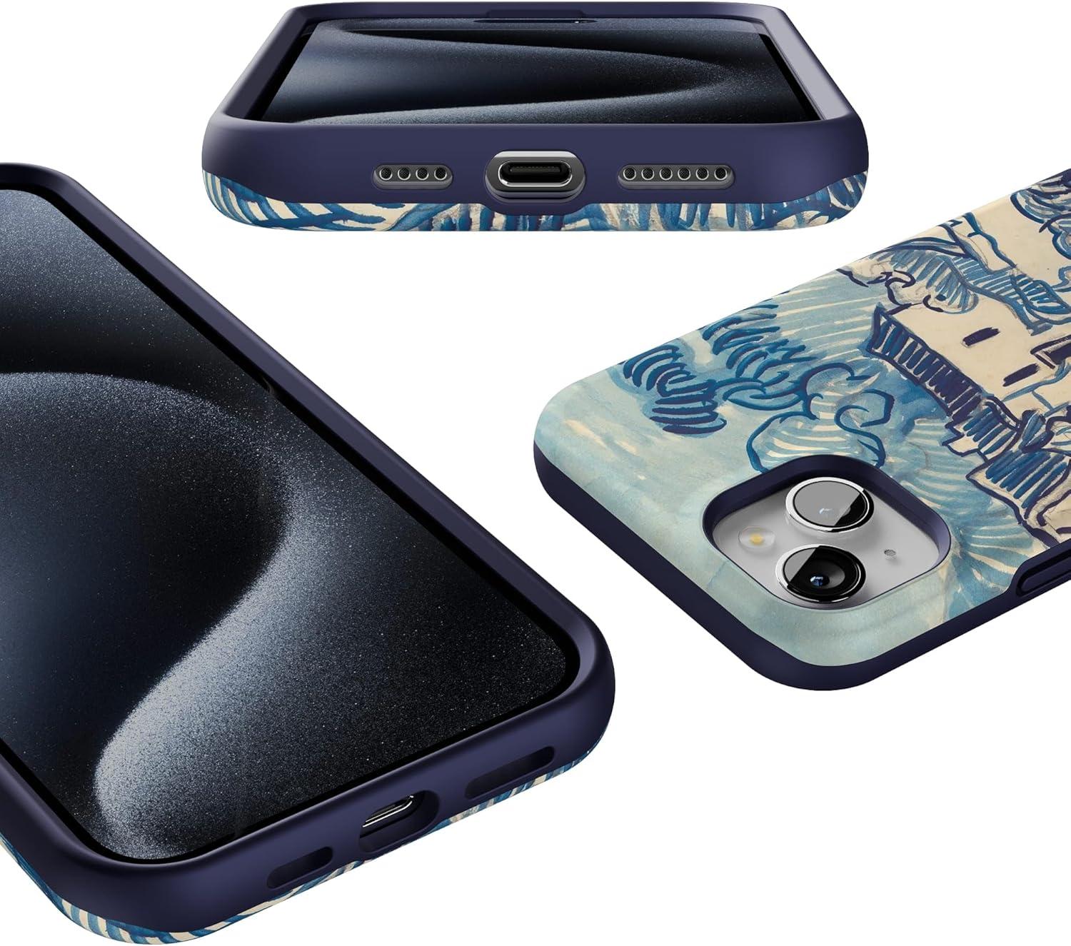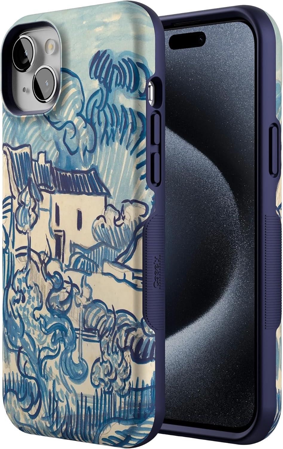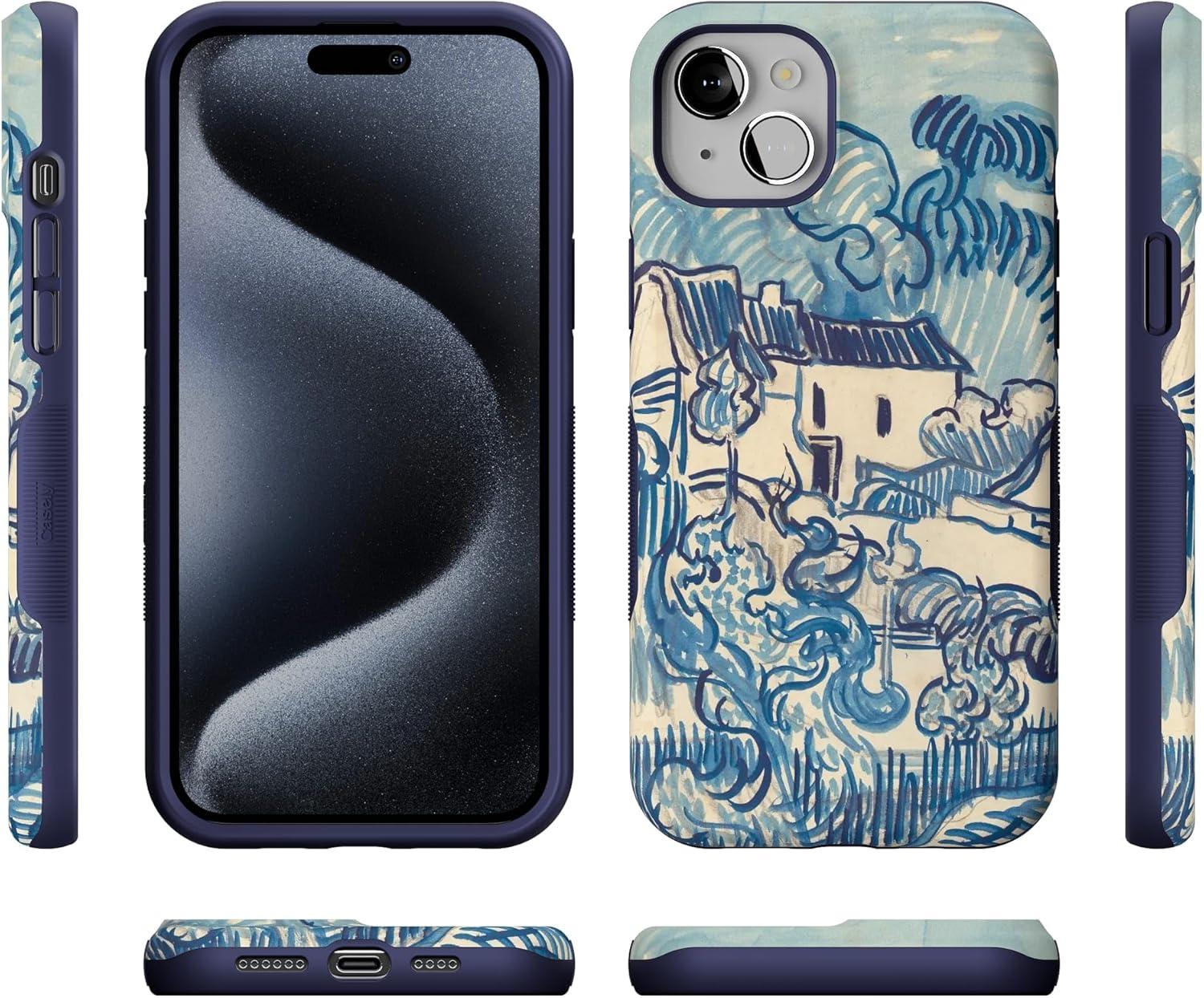 Casely iPhone 15 Plus Case | Navy Floral | Full Bloom | Bold Protective Design | Compatible with MagSafe(Van Gogh | Landscape With Houses)