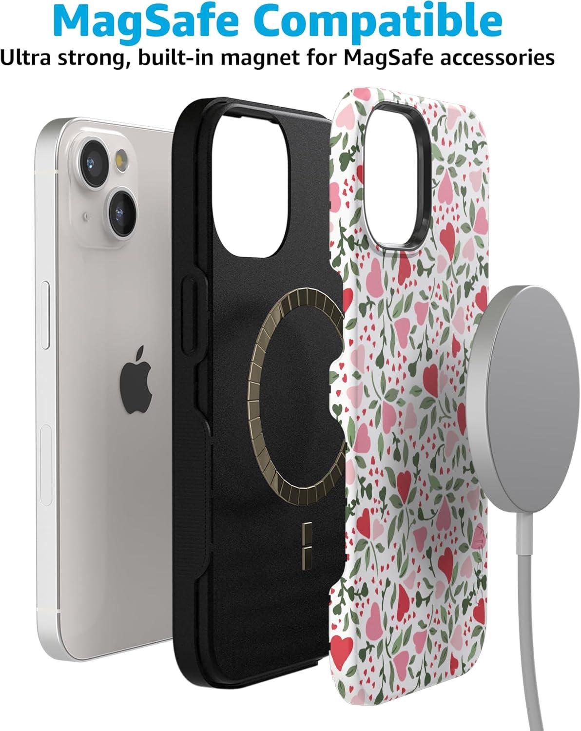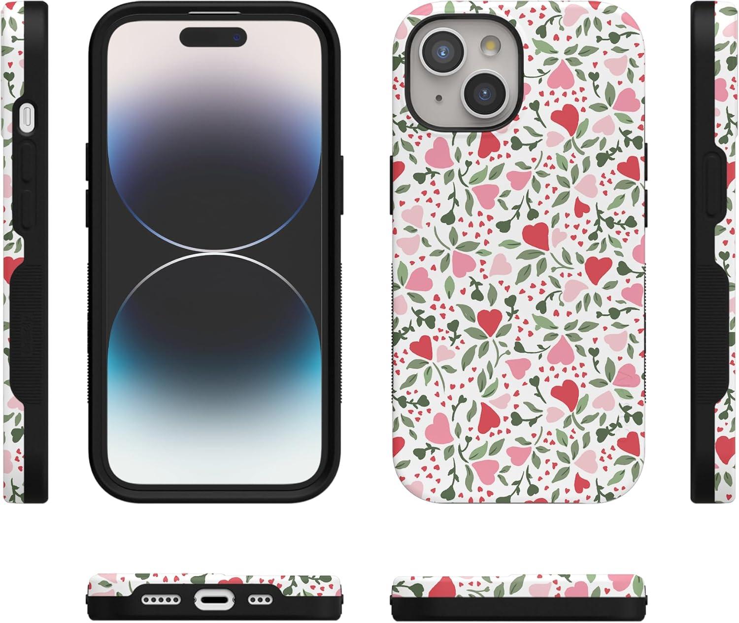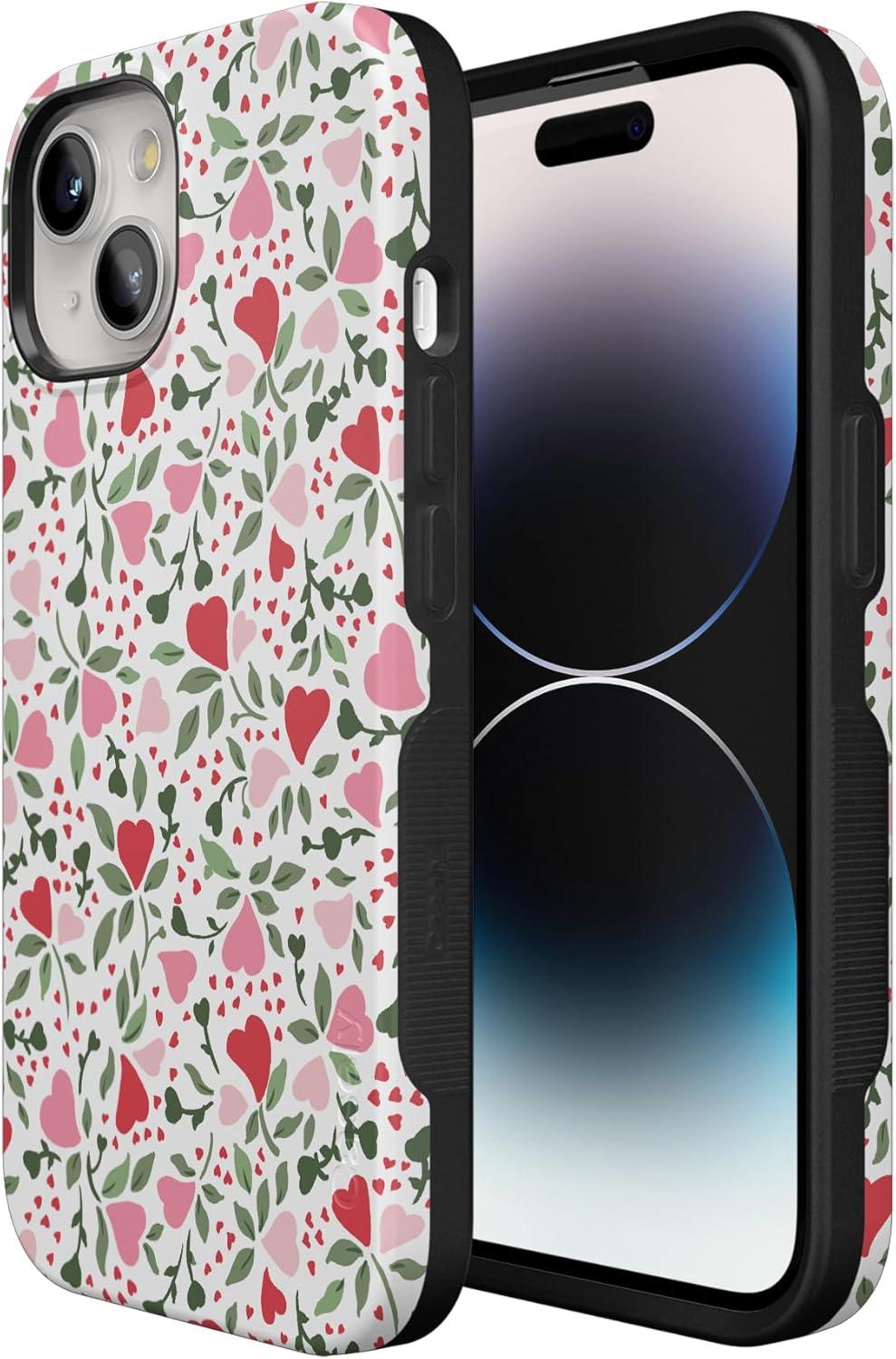 Casely iPhone 15 Plus Case | Navy Floral | Full Bloom | Bold Protective Design | Compatible with MagSafe(Vines of Love | Floral Heart)