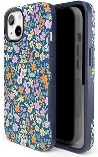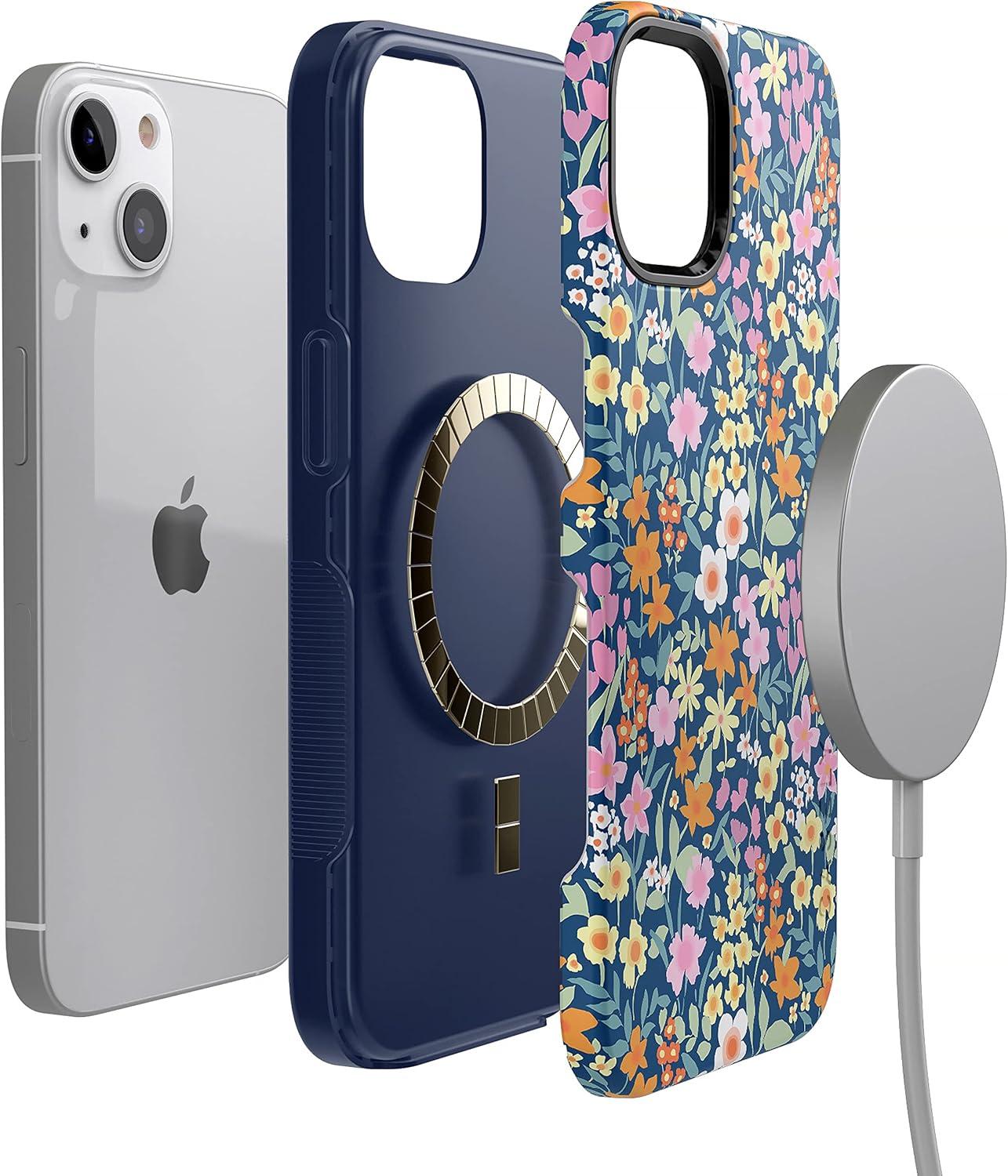 Casely iPhone 15 Plus Case – Outside The Lines Crayola Marker Case – Bold Compatible with MagSafe(Full Bloom | Navy Floral)