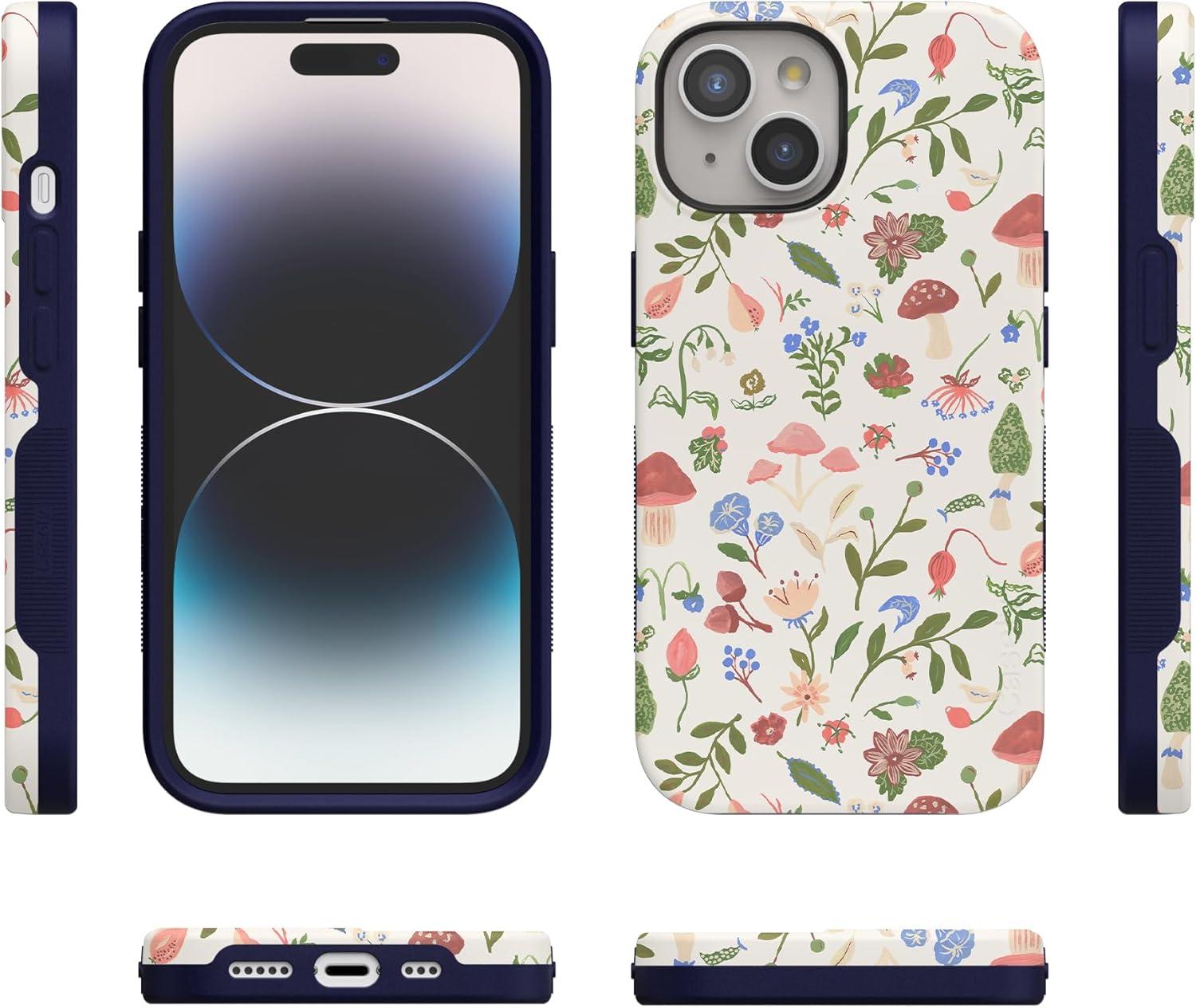 Casely iPhone 15 Plus Case – Outside The Lines Crayola Marker Case – Bold Compatible with MagSafe(Garden Party | Mushroom Floral)