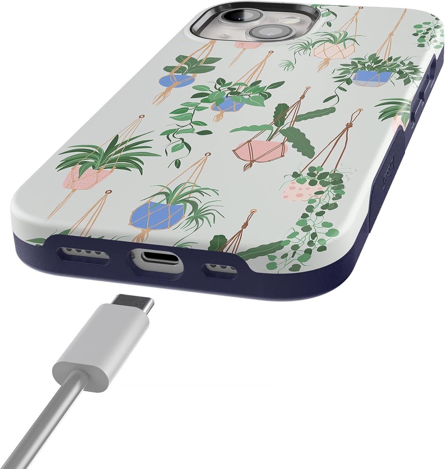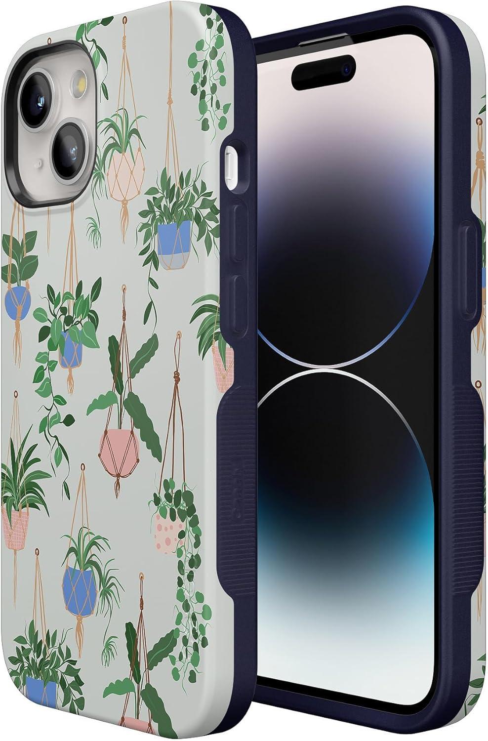 Casely iPhone 15 Plus Case – Outside The Lines Crayola Marker Case – Bold Compatible with MagSafe(Hanging Around | Potted Plants Floral)