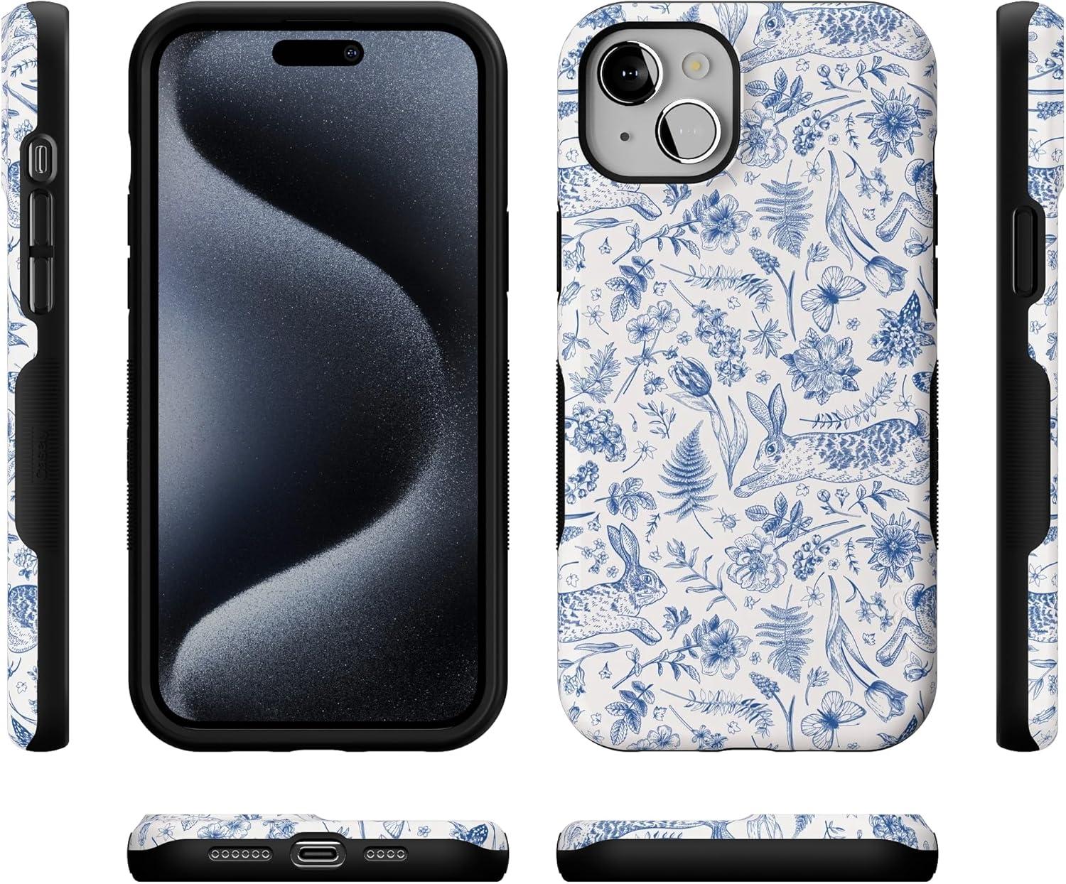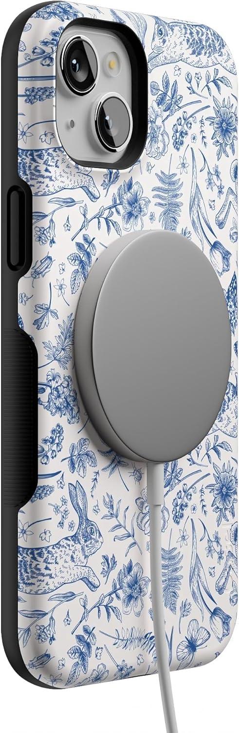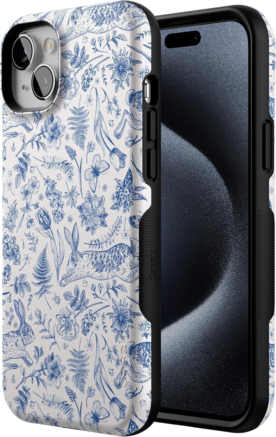 Casely iPhone 15 Plus Case – Outside The Lines Crayola Marker Case – Bold Compatible with MagSafe(Hop & Bloom | Bunny Toile)