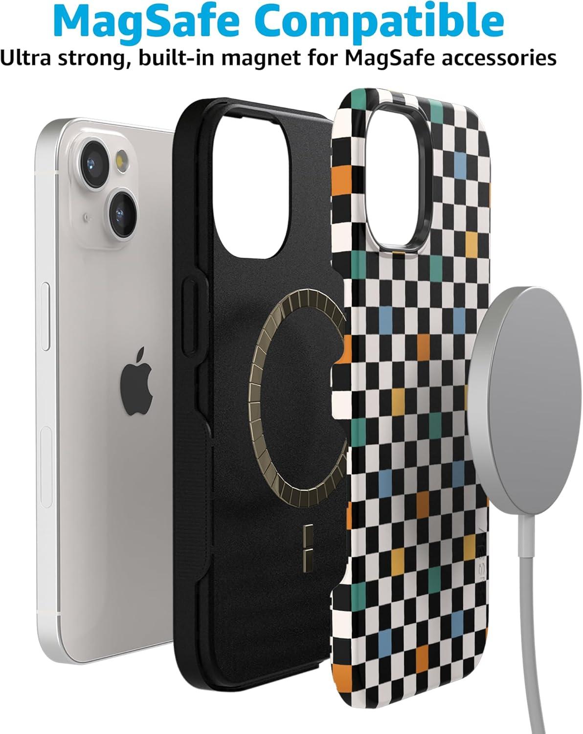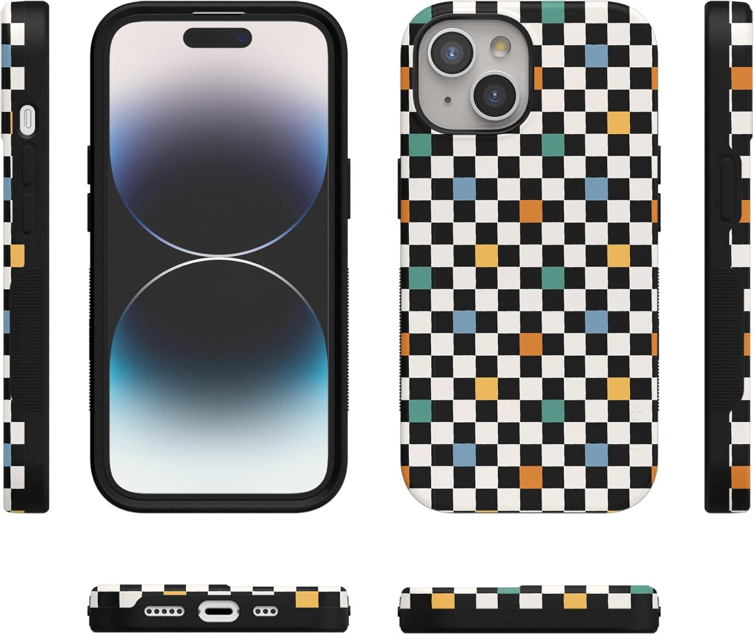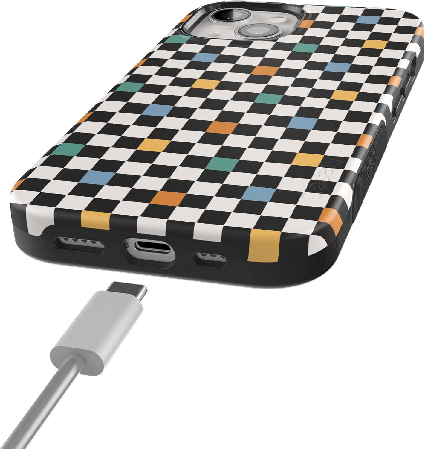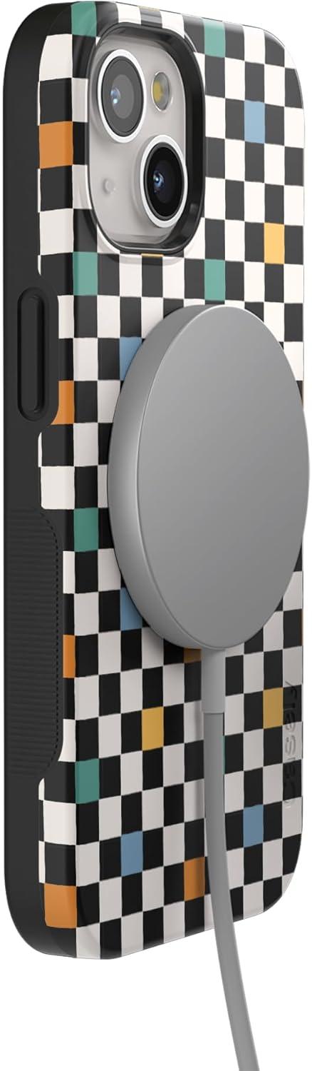 Casely iPhone 15 Plus Case – Outside The Lines Crayola Marker Case – Bold Compatible with MagSafe(Old Skool | Retro Checkerboard)