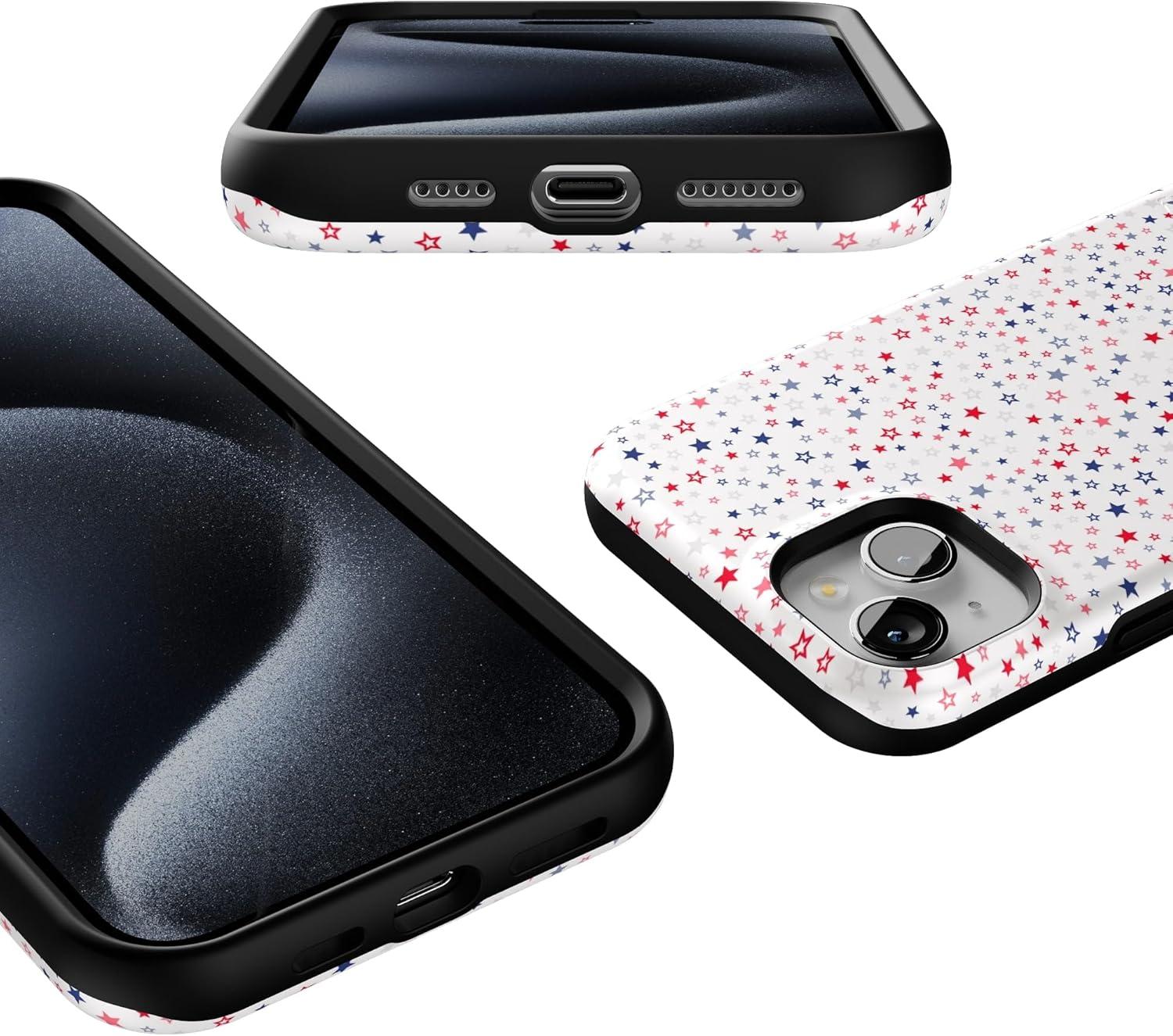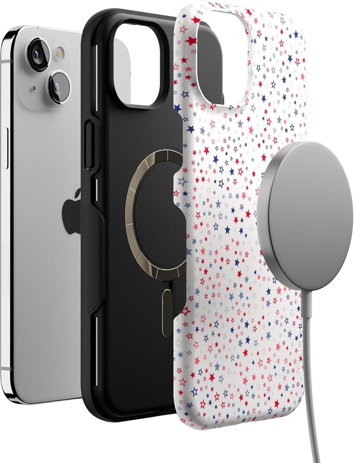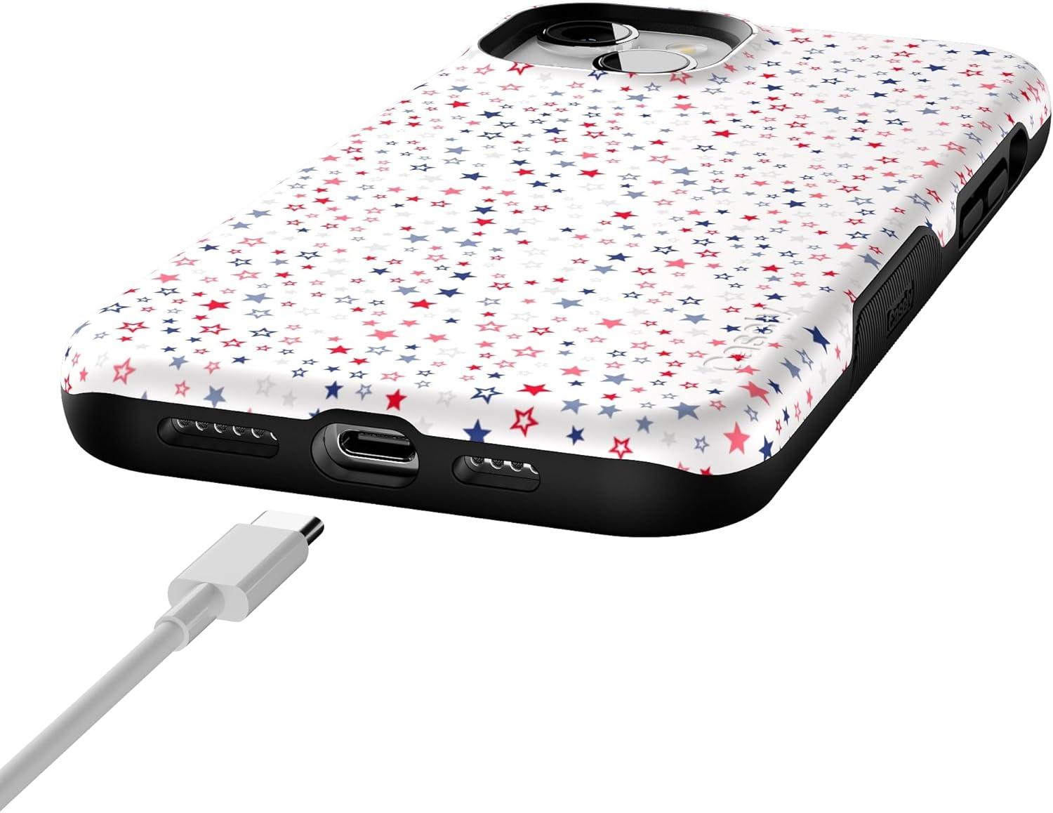 Casely iPhone 15 Plus Case – Outside The Lines Crayola Marker Case – Bold Compatible with MagSafe(Seeing Stars | Red White & Blue)