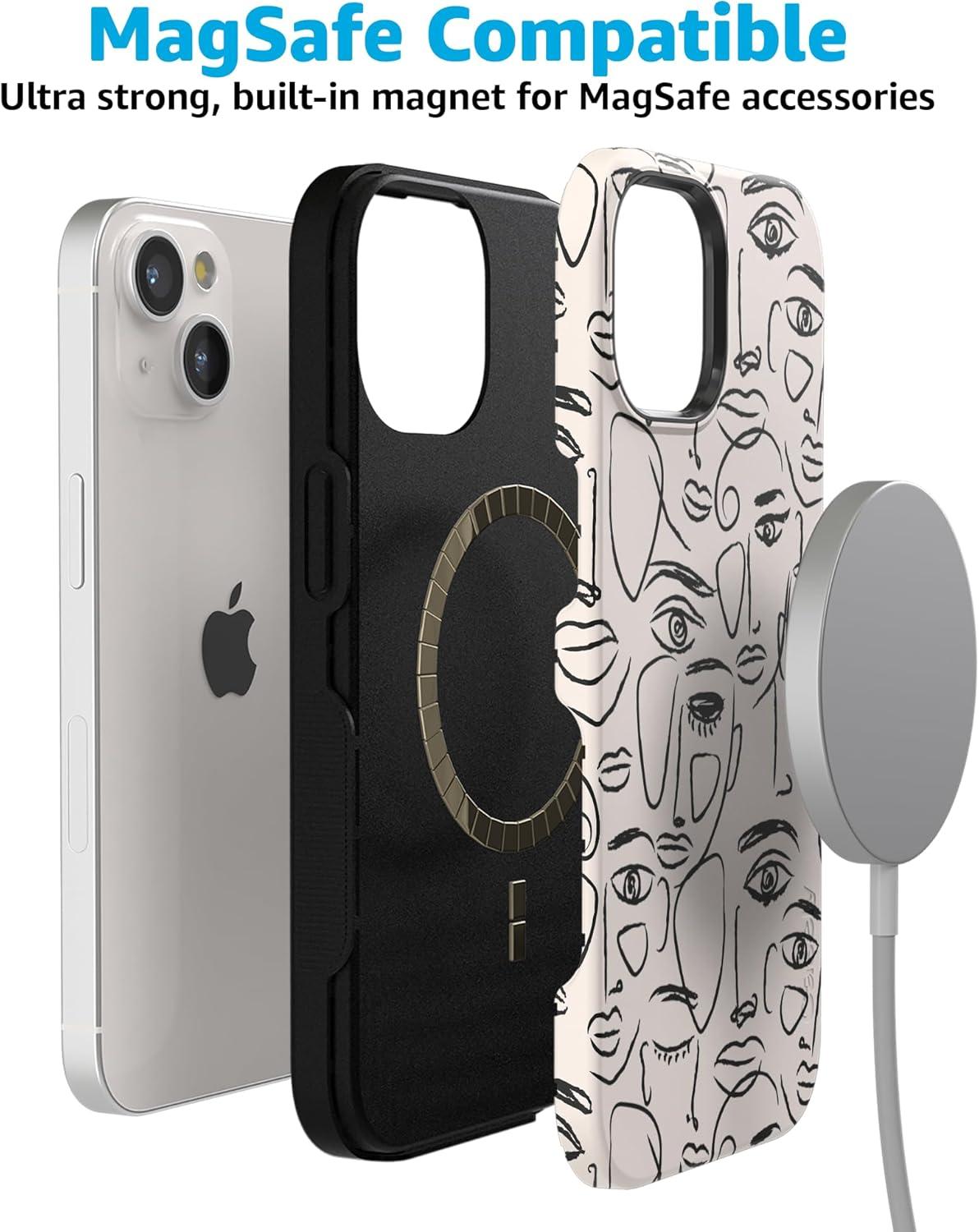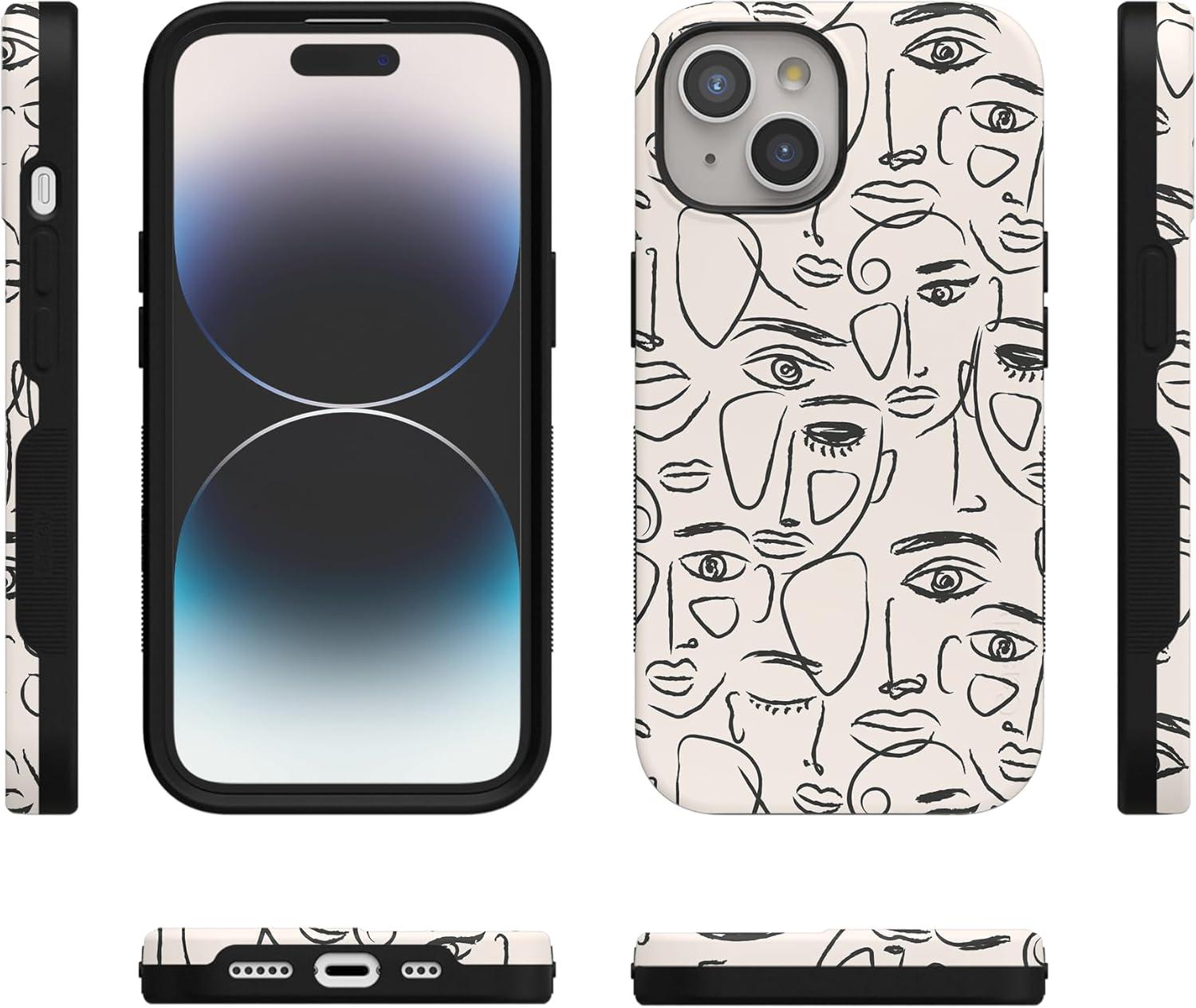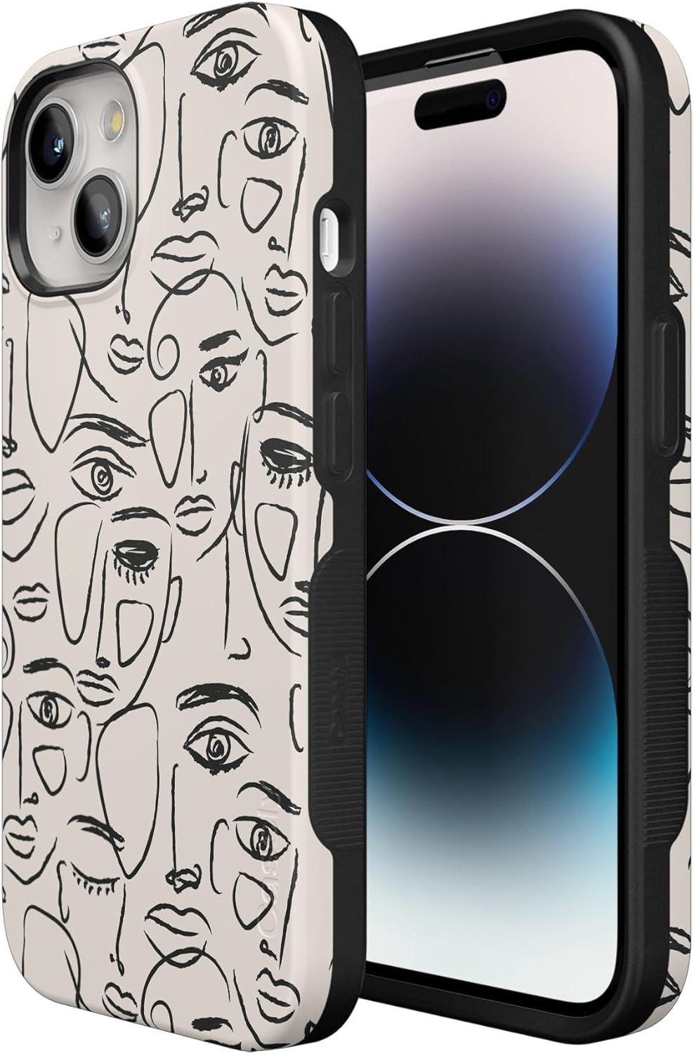 Casely iPhone 15 Plus Case – Outside The Lines Crayola Marker Case – Bold Compatible with MagSafe(We’re All Human | Minimal Face Art)