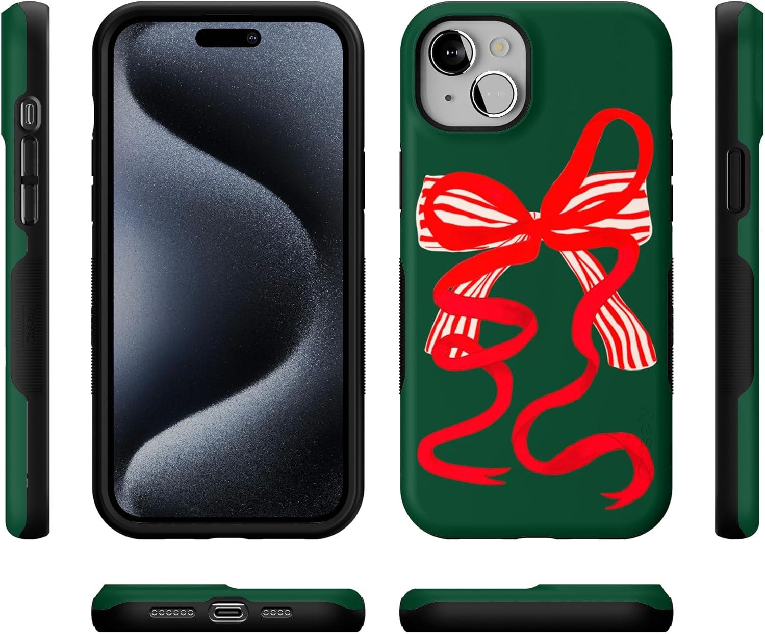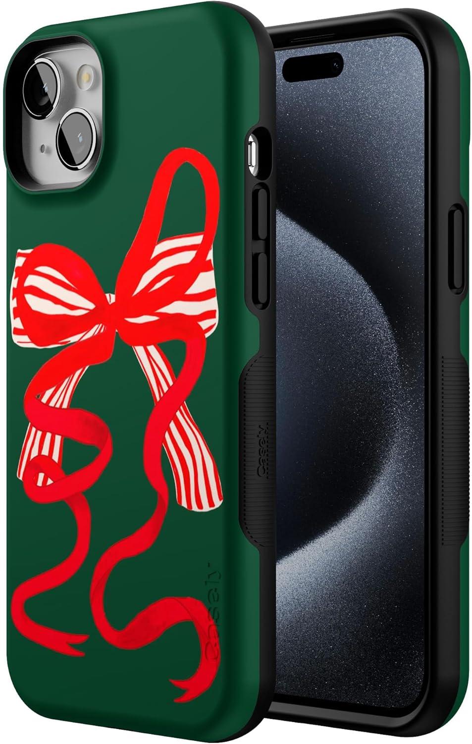 Casely iPhone 15 Plus Case | Santa’s Favorite | Holiday Bow | Bold Protective Design | MagSafe Compatible Design