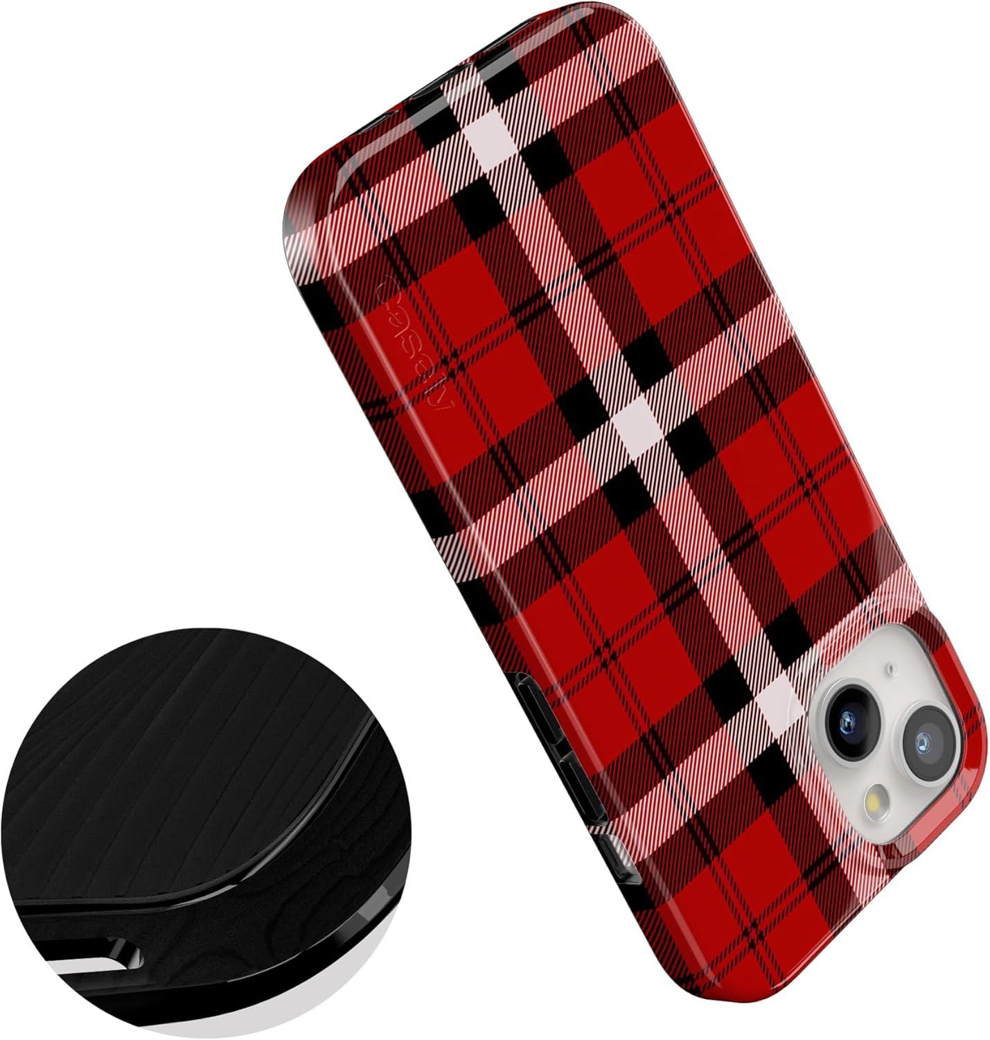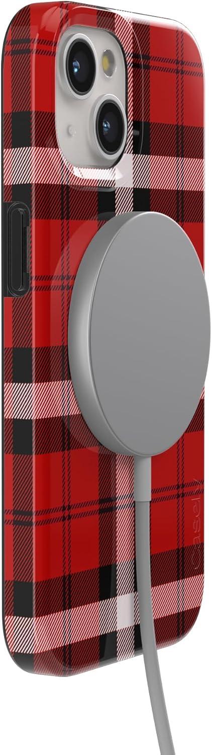 Casely iPhone 15 Plus Case | Vines of Love | Floral Heart | Compatible with MagSafe | Classic Ultra Thin Design(As if! | Red Plaid)