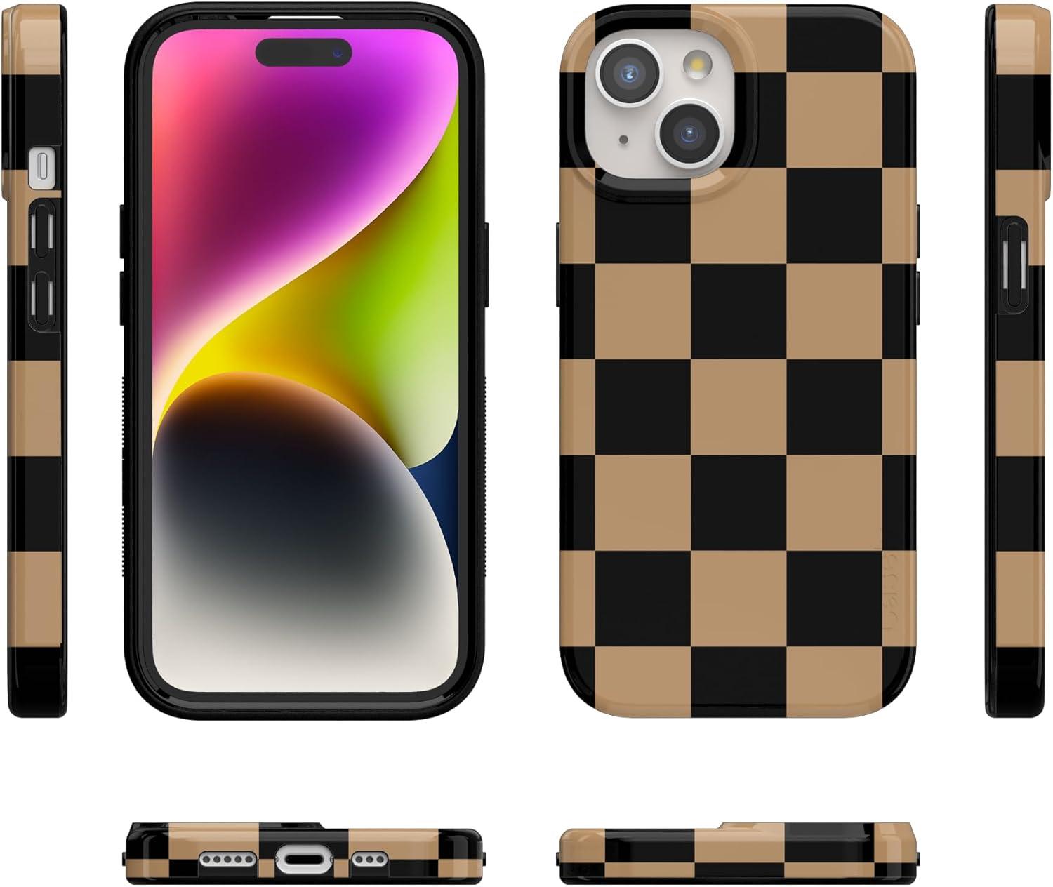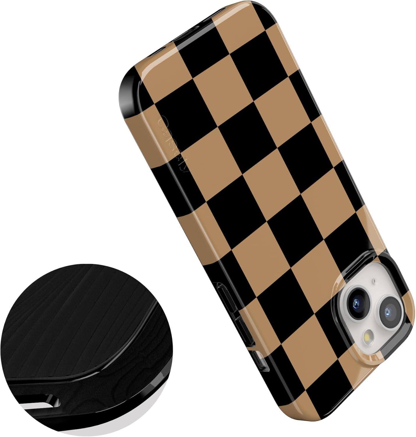 Casely iPhone 15 Plus Case | Vines of Love | Floral Heart | Compatible with MagSafe | Classic Ultra Thin Design(Fit Check | Black & Brown Checkerboard)