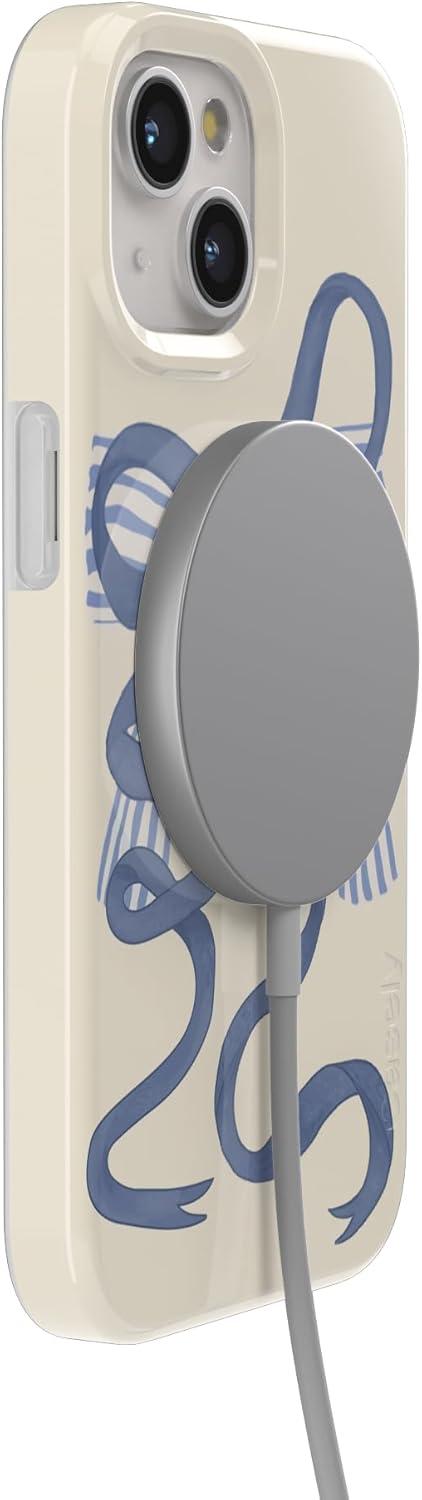 Casely iPhone 15 Plus Case | Vines of Love | Floral Heart | Compatible with MagSafe | Classic Ultra Thin Design(Heartstrings | Blue Bow)
