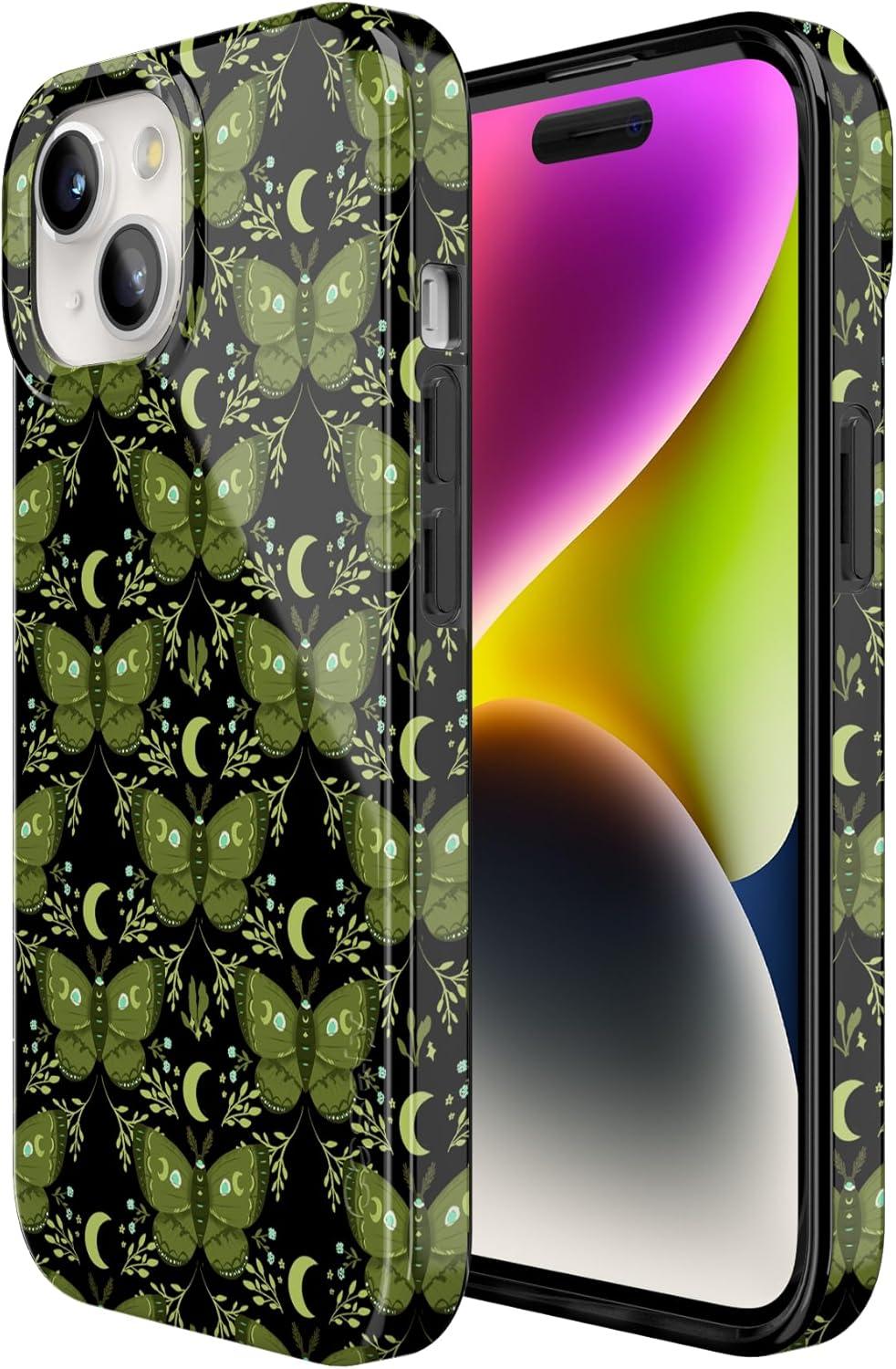 Casely iPhone 15 Plus Case | Vines of Love | Floral Heart | Compatible with MagSafe | Classic Ultra Thin Design(Mystic Moths | Green Twilight)