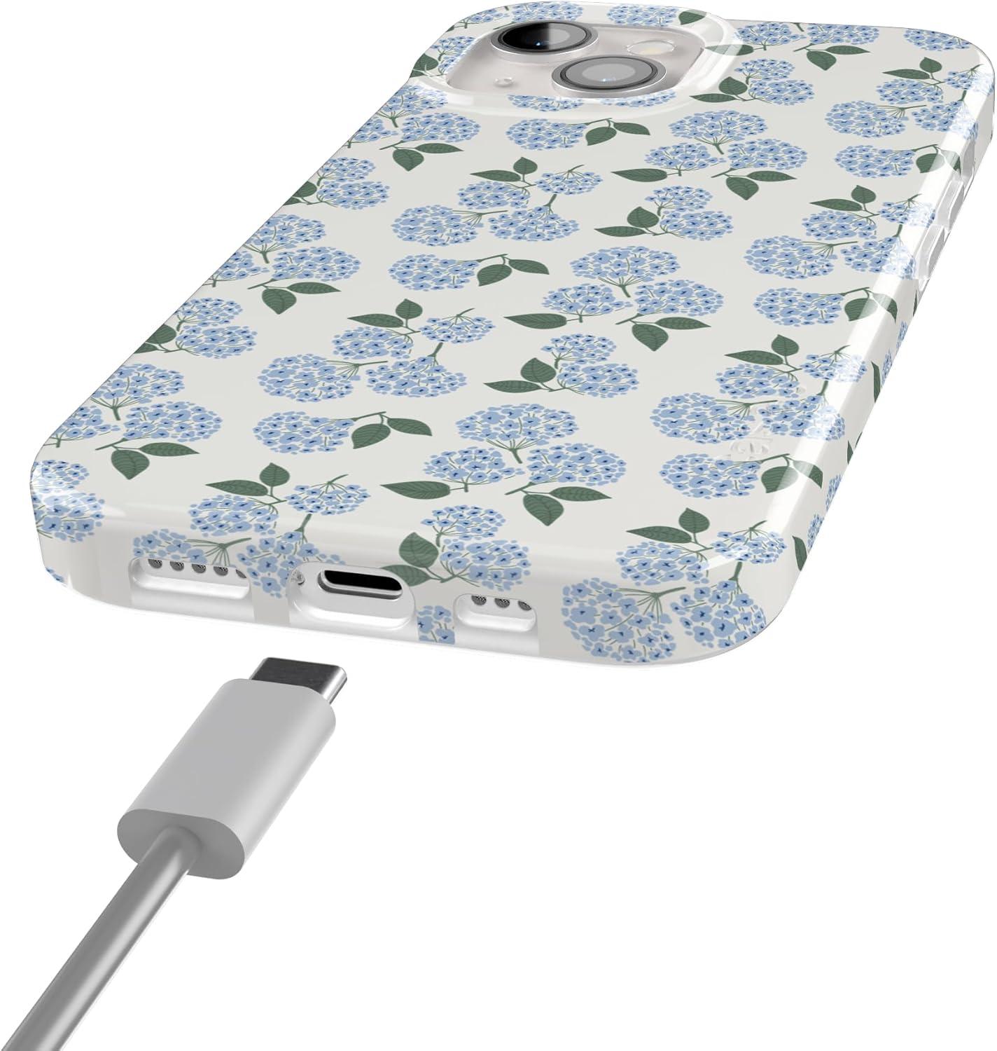 Casely iPhone 15 Plus Case | Vines of Love | Floral Heart | Compatible with MagSafe | Classic Ultra Thin Design(Nantucket Cottage | Blue Hydrangea)