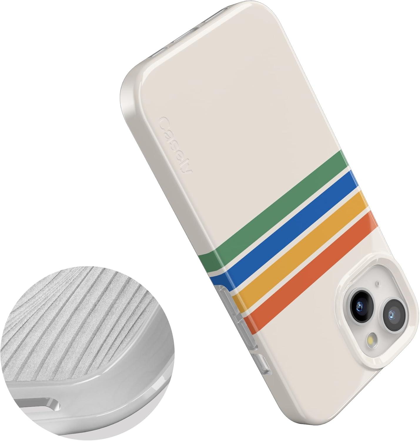Casely iPhone 15 Plus Case | Vines of Love | Floral Heart | Compatible with MagSafe | Classic Ultra Thin Design(Totally Groovy | Rainbow Stripes Color Block)
