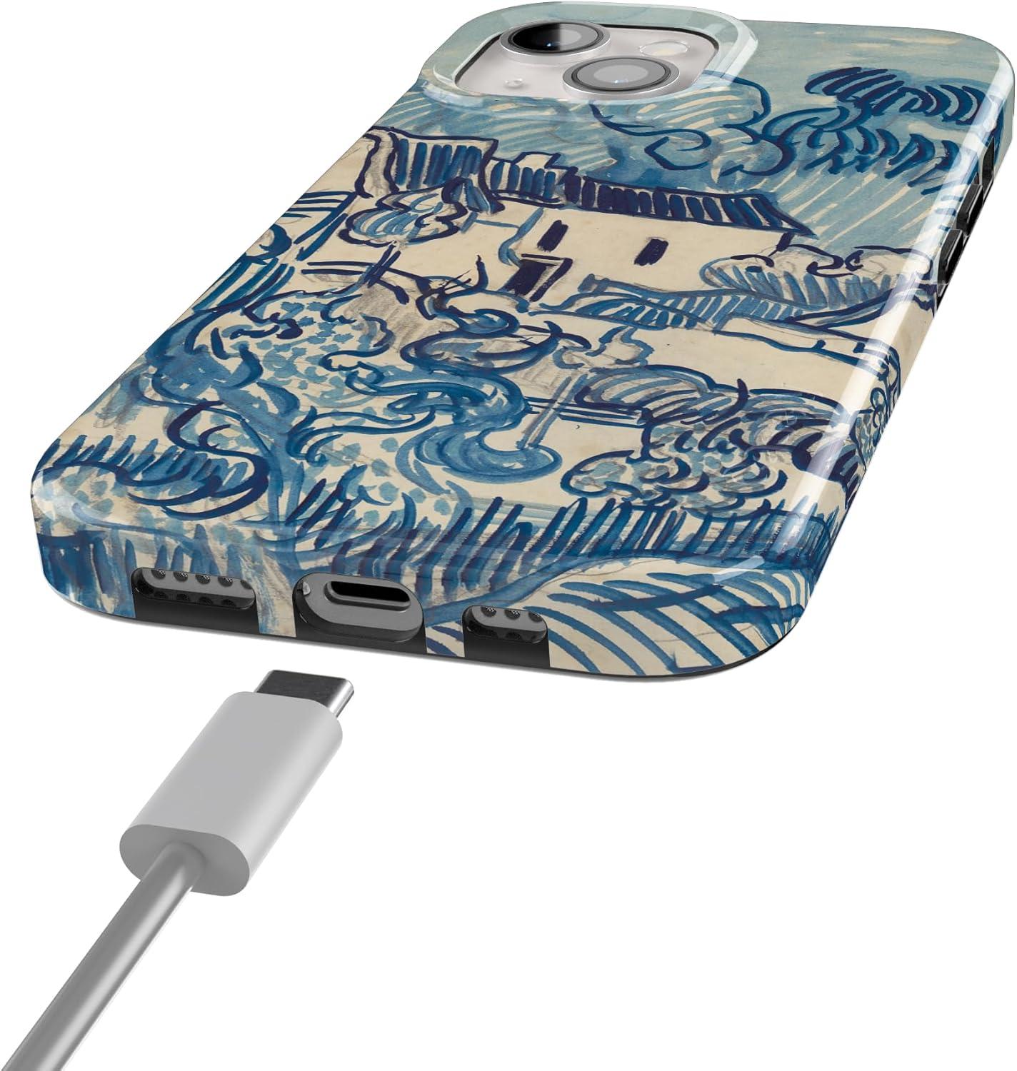 Casely iPhone 15 Plus Case | Vines of Love | Floral Heart | Compatible with MagSafe | Classic Ultra Thin Design(Van Gogh | Landscape With Houses)