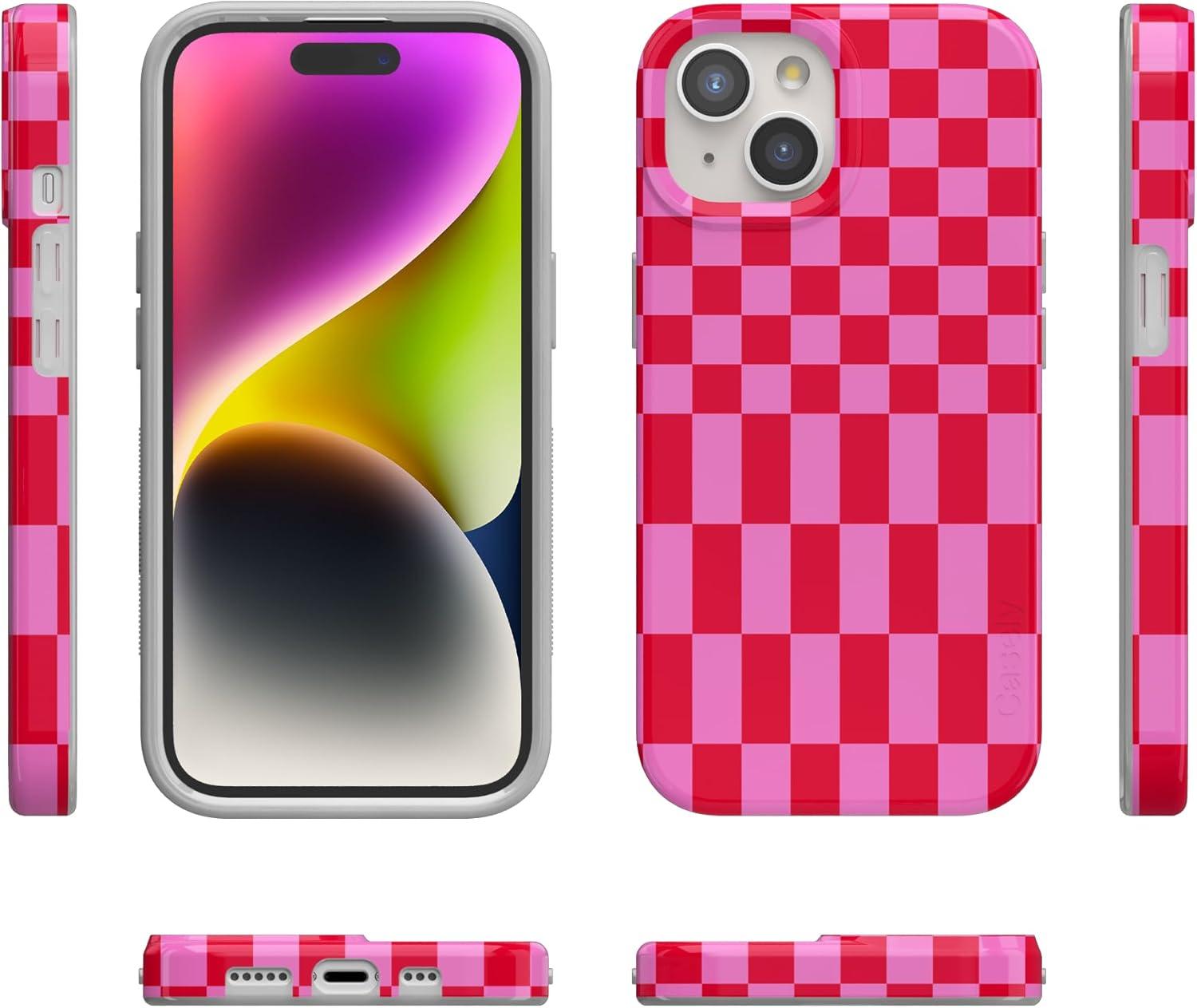 Casely iPhone 15 Plus Case | Vines of Love | Floral Heart | Compatible with MagSafe | Classic Ultra Thin Design(Vibe Check | Pink Checkerboard)