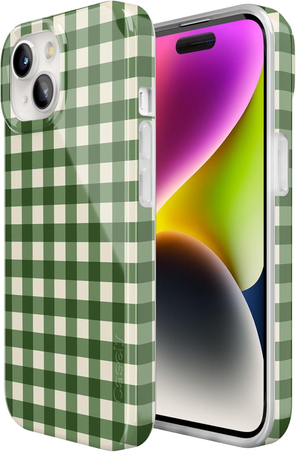 Casely iPhone 15 Plus Case | Waves & Rays | Sunshine | Compatible with MagSafe | Classic Ultra Thin Design(Checked Twice | Green Plaid)