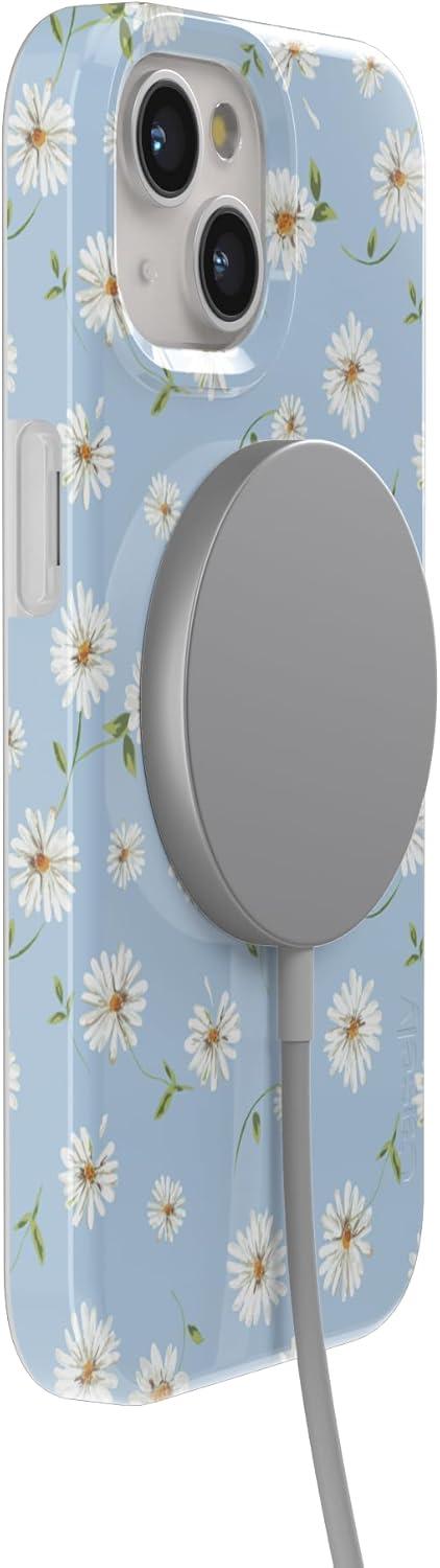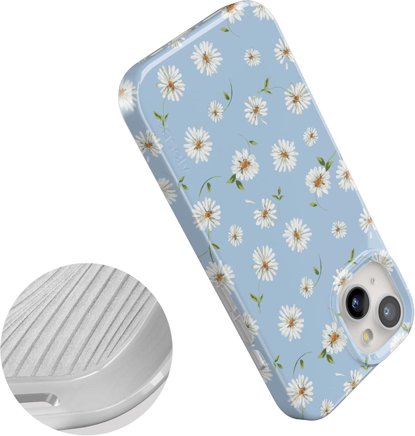 Casely iPhone 15 Plus Case | Waves & Rays | Sunshine | Compatible with MagSafe | Classic Ultra Thin Design(Daisy Daydream | Baby Blue Floral)