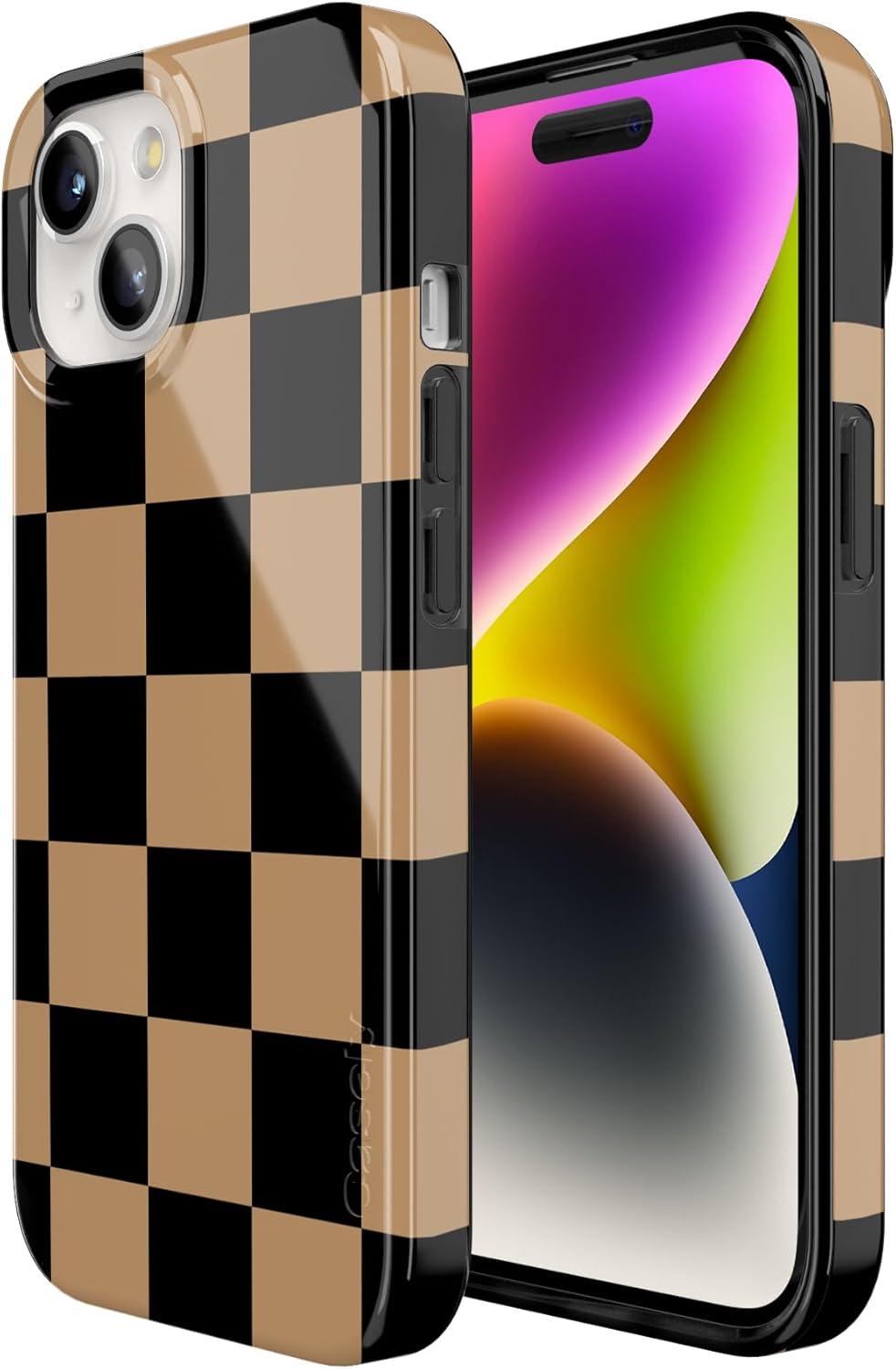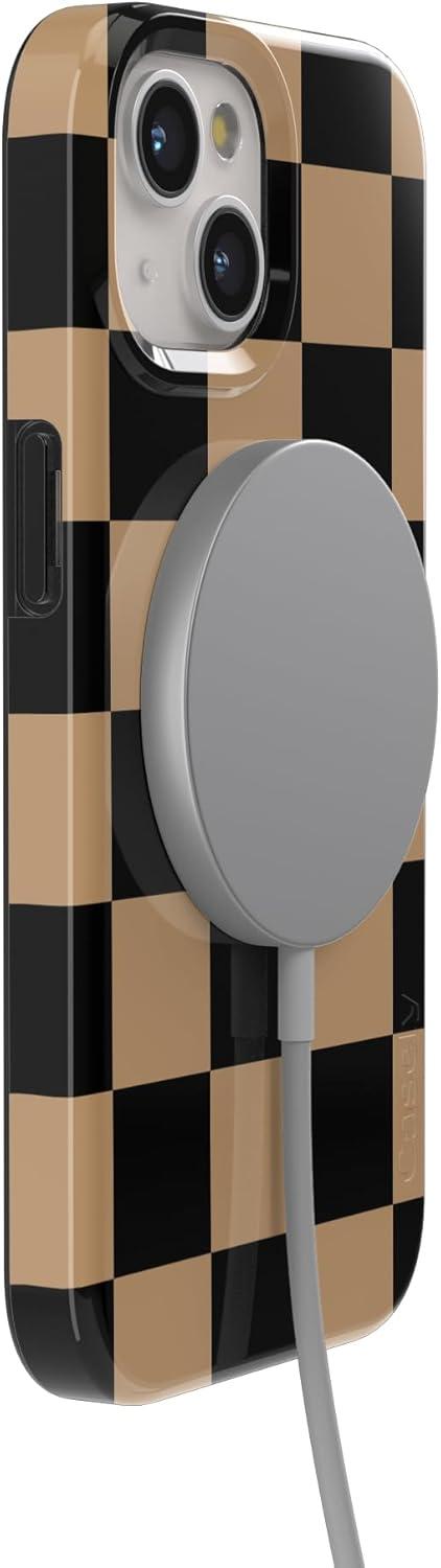 Casely iPhone 15 Plus Case | Waves & Rays | Sunshine | Compatible with MagSafe | Classic Ultra Thin Design(Fit Check | Black & Brown Checkerboard)