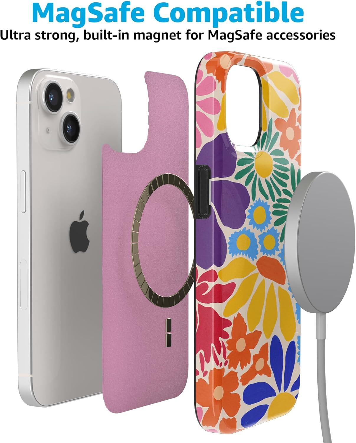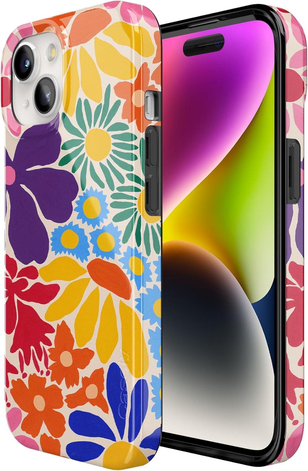 Casely iPhone 15 Plus Case | Waves & Rays | Sunshine | Compatible with MagSafe | Classic Ultra Thin Design(Flower Patch | Multi-Color Floral)