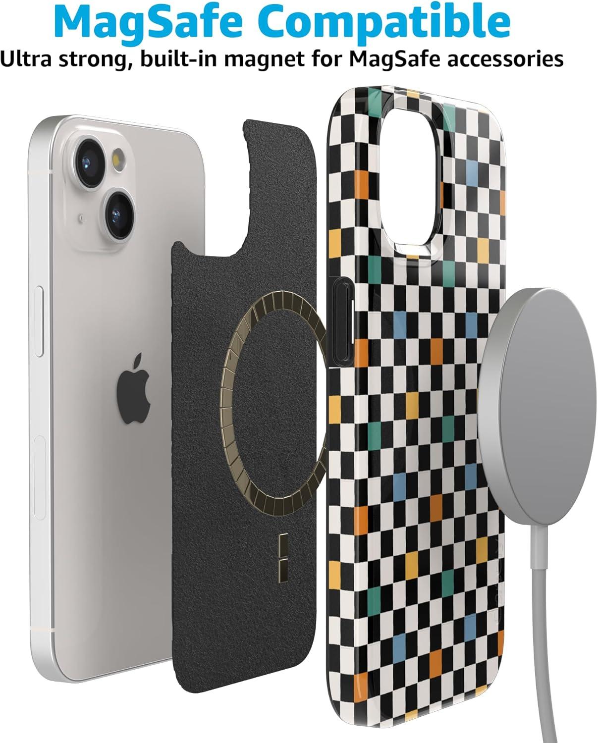 Casely iPhone 15 Plus Case | Waves & Rays | Sunshine | Compatible with MagSafe | Classic Ultra Thin Design(Old Skool | Retro Checkerboard)