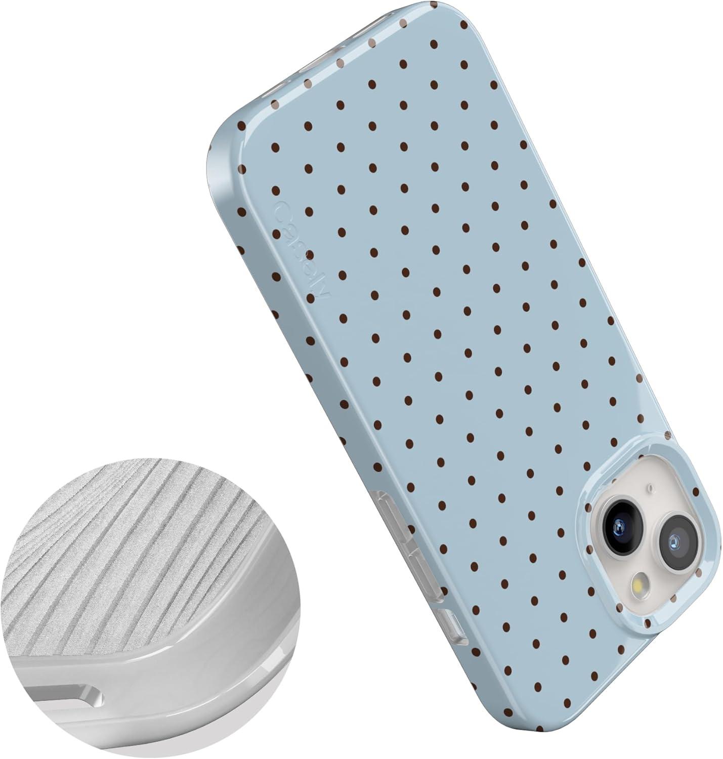 Casely iPhone 15 Plus Case | Waves & Rays | Sunshine | Compatible with MagSafe | Classic Ultra Thin Design(On the Dot | Blue Polka Dot)