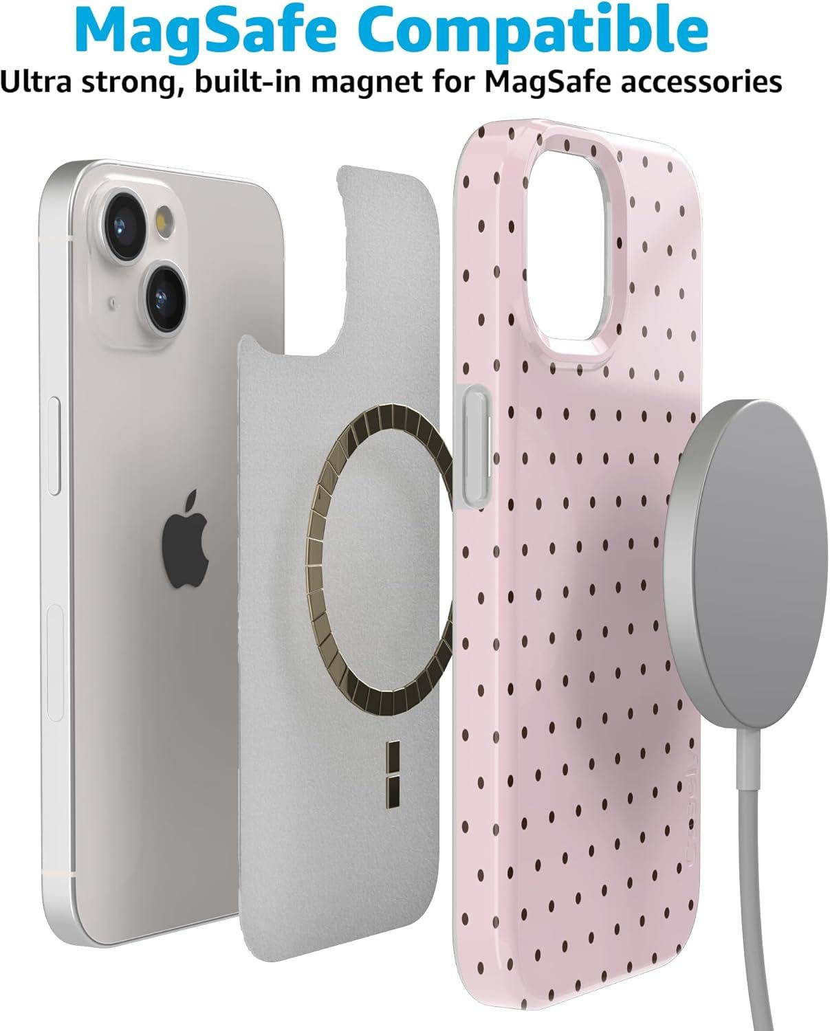 Casely iPhone 15 Plus Case | Waves & Rays | Sunshine | Compatible with MagSafe | Classic Ultra Thin Design(On the Dot | Pink Polka Dot)