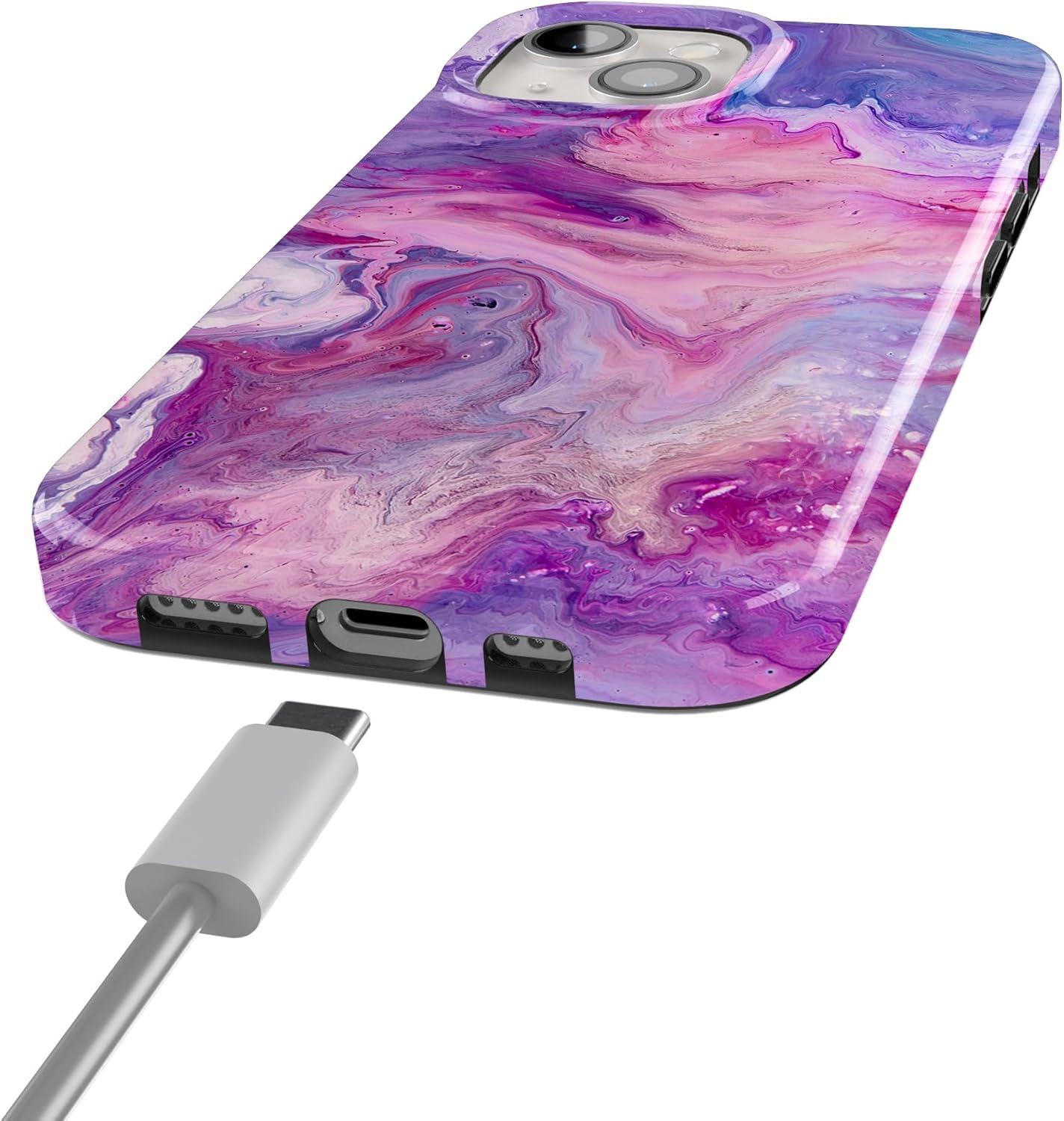 Casely iPhone 15 Plus Case | Waves & Rays | Sunshine | Compatible with MagSafe | Classic Ultra Thin Design(Tie Dying Over You | Purple Marble)