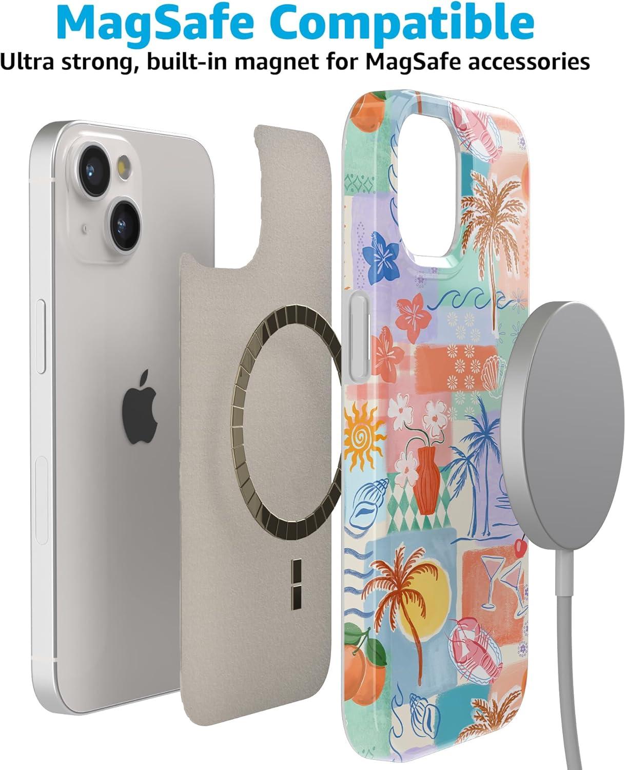 Casely iPhone 15 Plus Case | Waves & Rays | Sunshine | Compatible with MagSafe | Classic Ultra Thin Design(Tropical Heat | Beachy Collage)