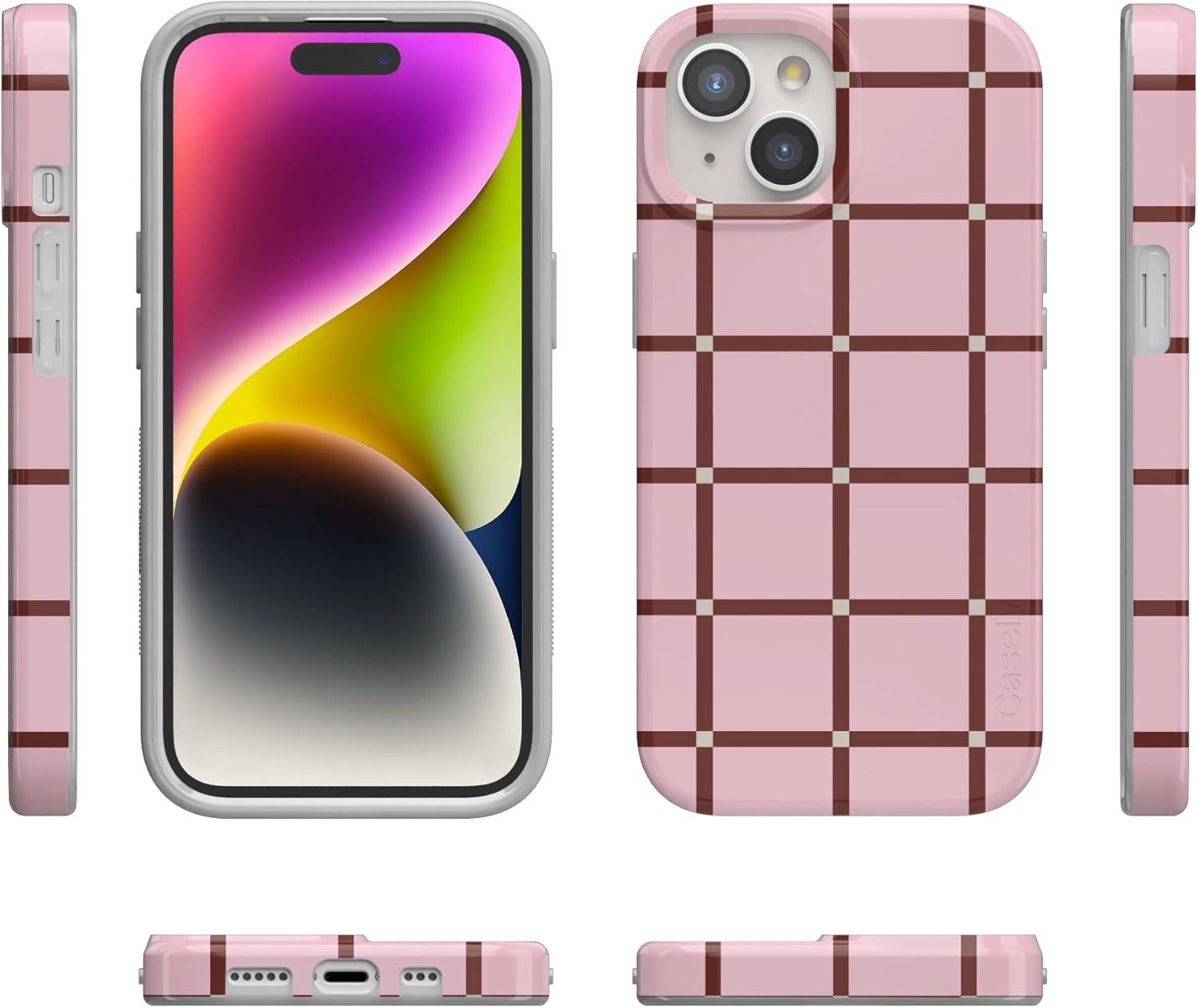 Casely iPhone 15 Plus Case | Waves & Rays | Sunshine | Compatible with MagSafe | Classic Ultra Thin Design(Uptown Gridlock | Pink Checkerboard)