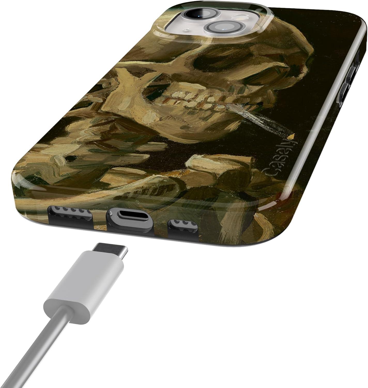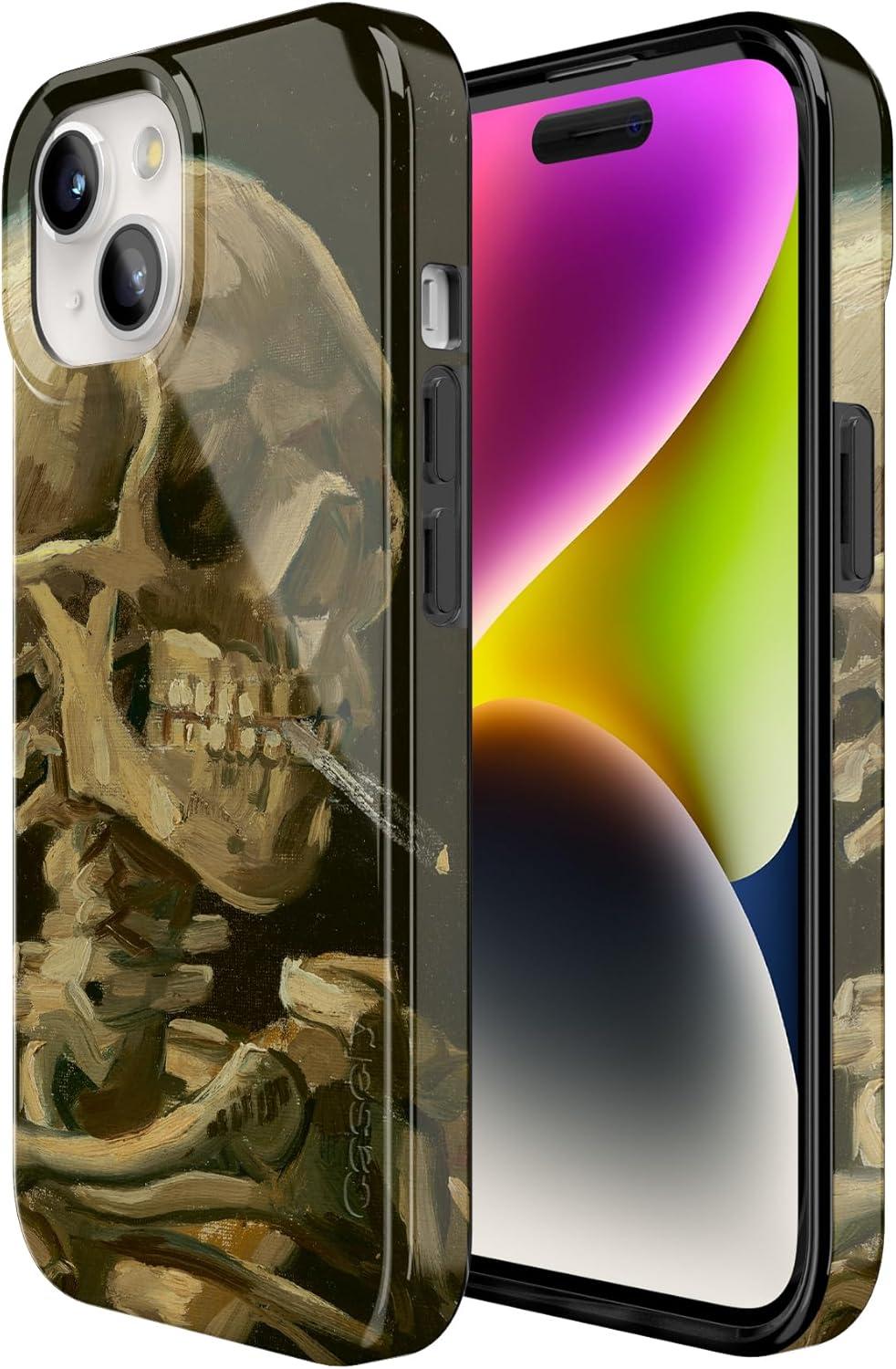Casely iPhone 15 Plus Case | Waves & Rays | Sunshine | Compatible with MagSafe | Classic Ultra Thin Design(Van Gogh | Skull of a Skeleton with Burning Cig)