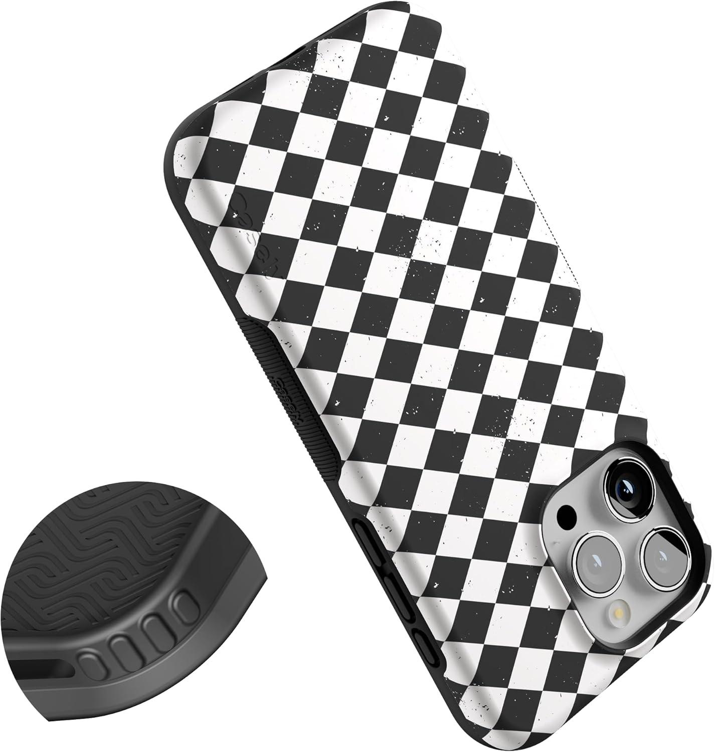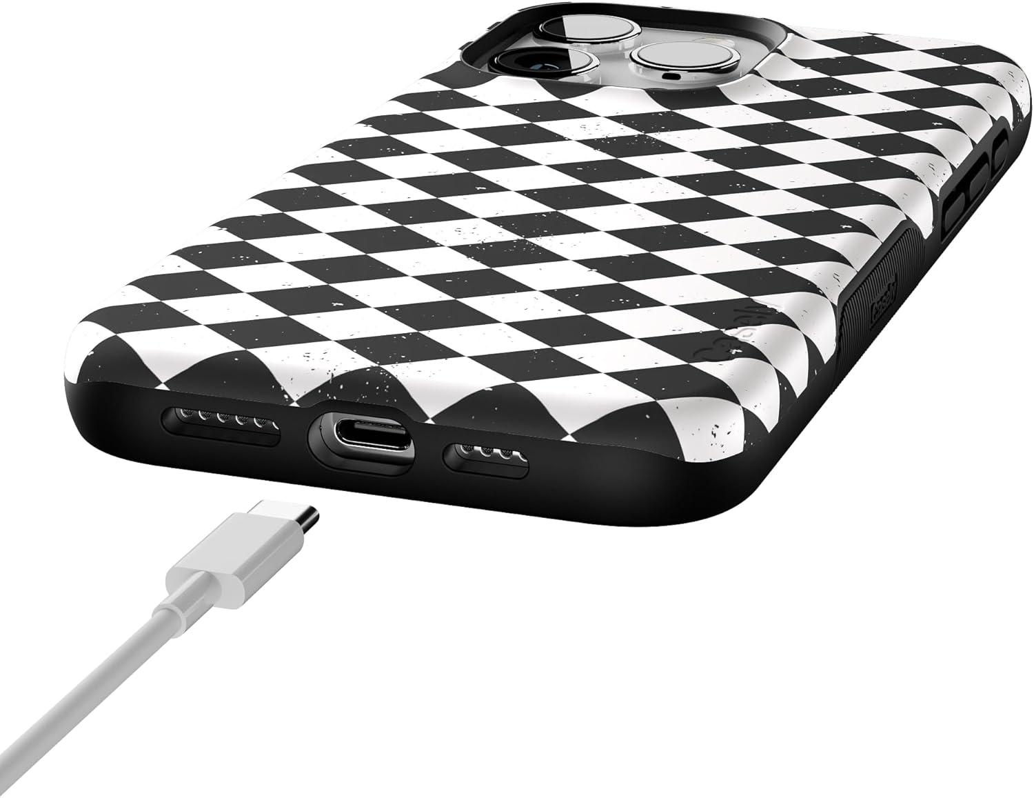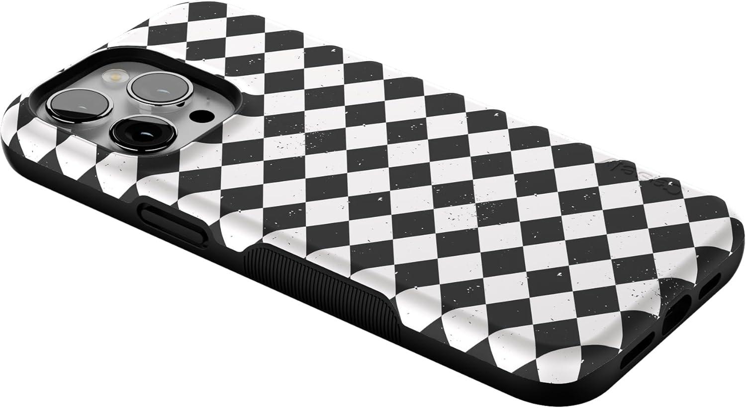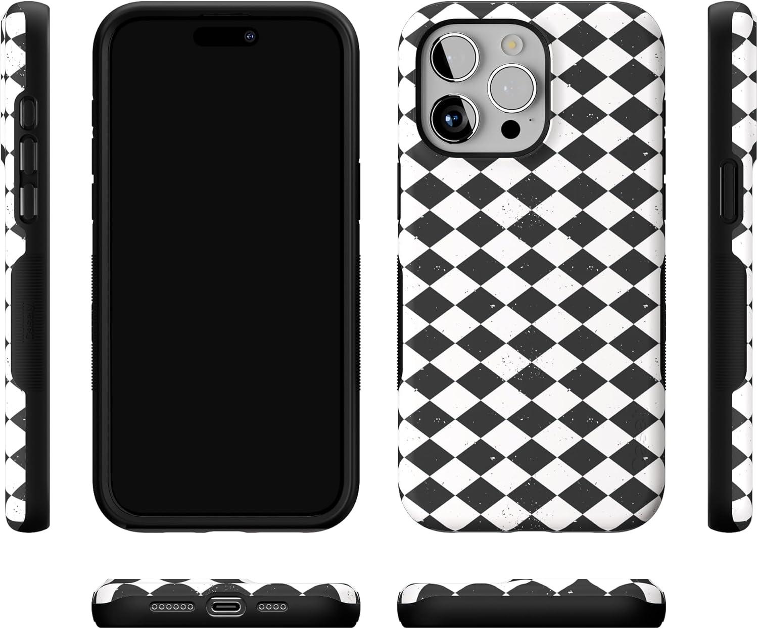 Casely iPhone 15 Pro Case | Harlequin Salem Diamond | Black and White | Bold Protective Design | MagSafe Compatible Design